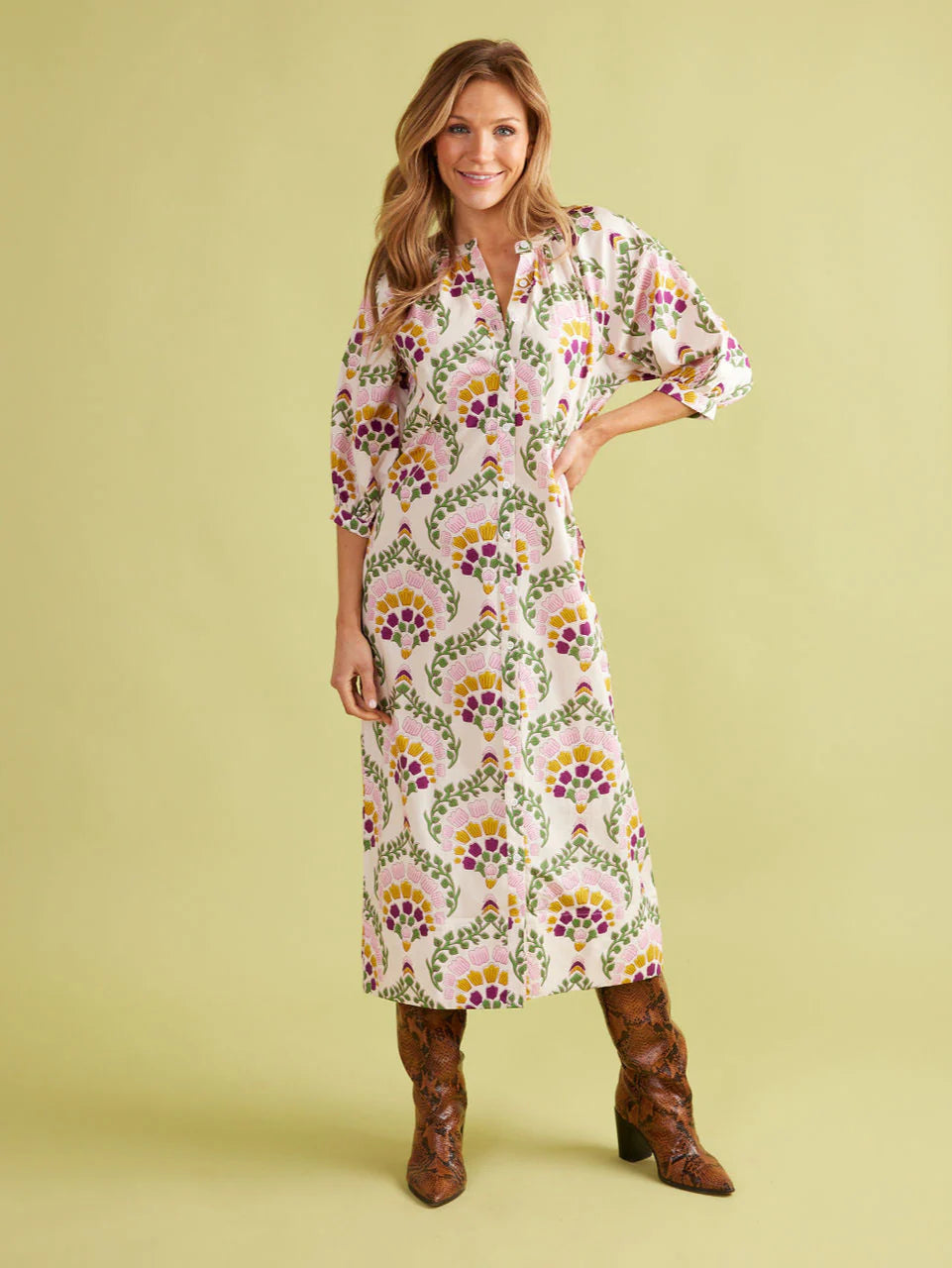 Each dress has cozy pockets, slight gathered shoulder with piping on placket and a wide ruffle trim, giving it a perfect silhouette.