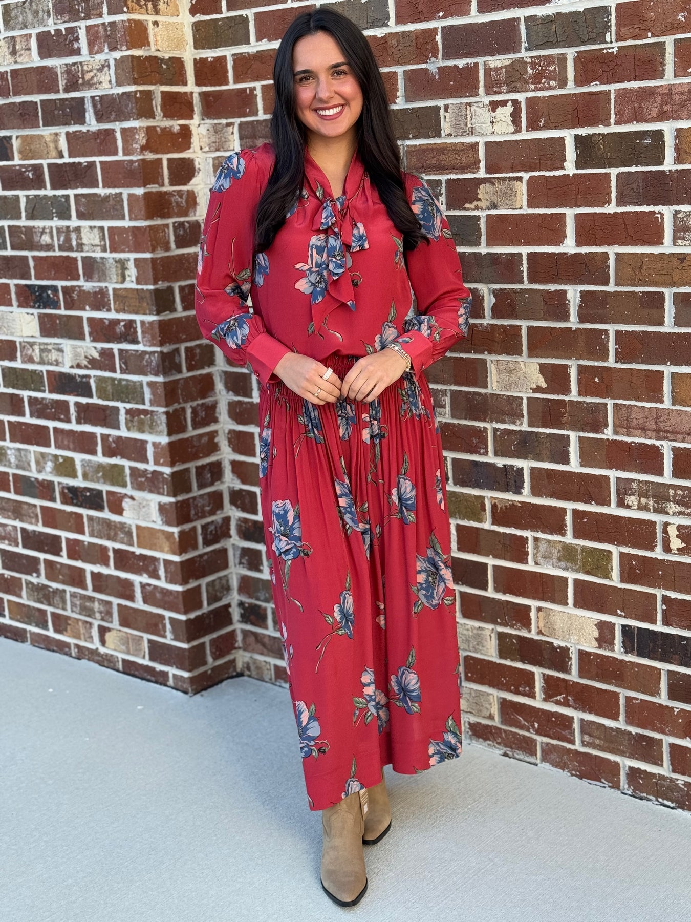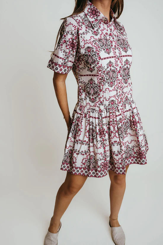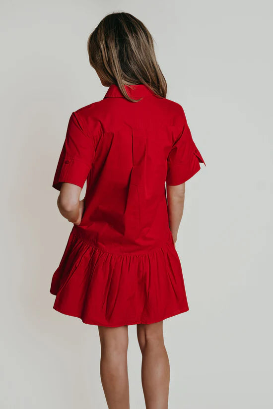 The Lainey Dress features a classic button-up front with a flattering belted waist, creating a polished silhouette. Its versatile design makes it perfect for both casual days and professional settings, offering comfort and style in one easy-to-wear piece.