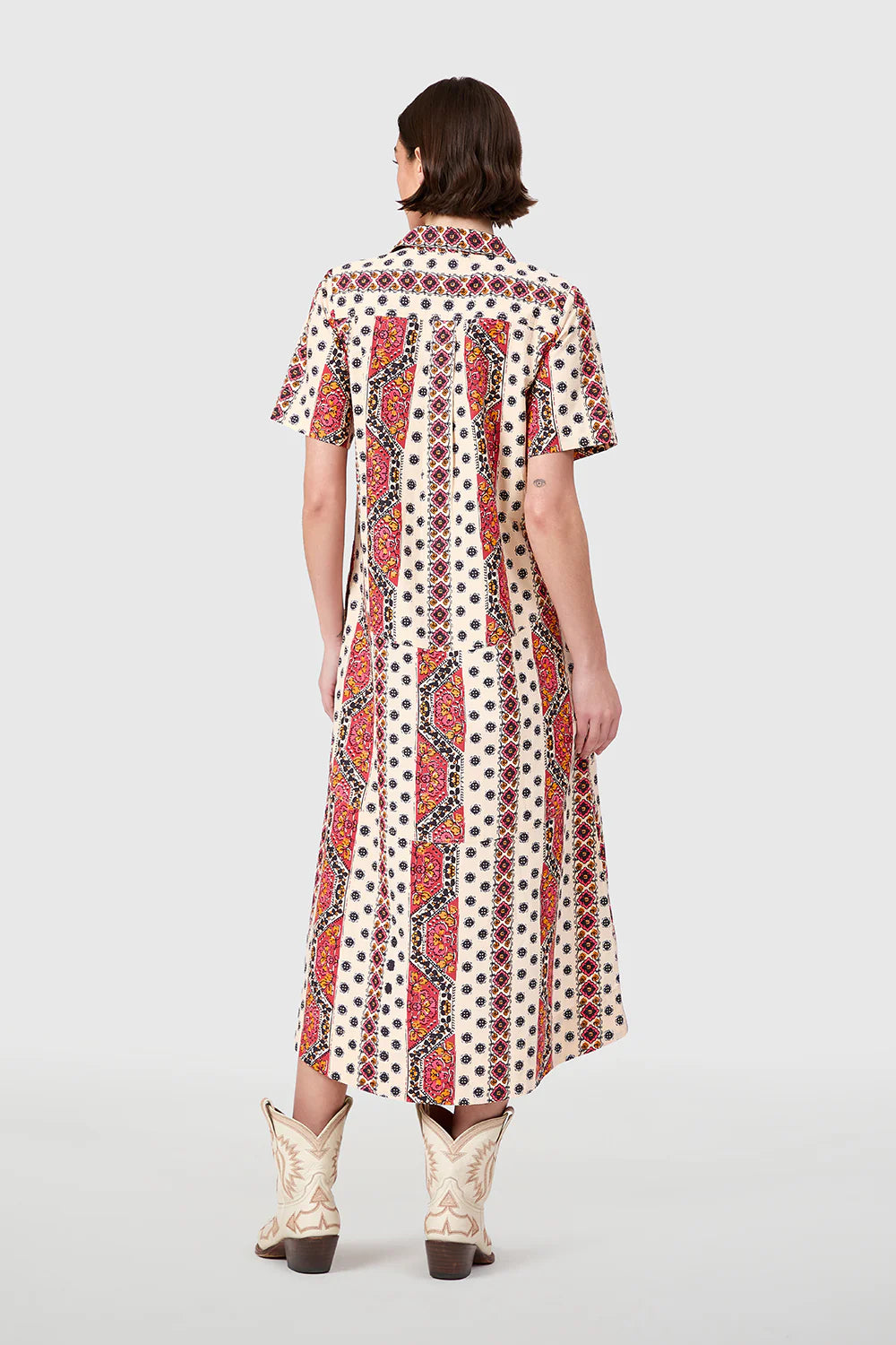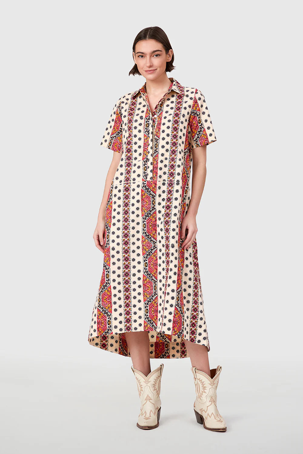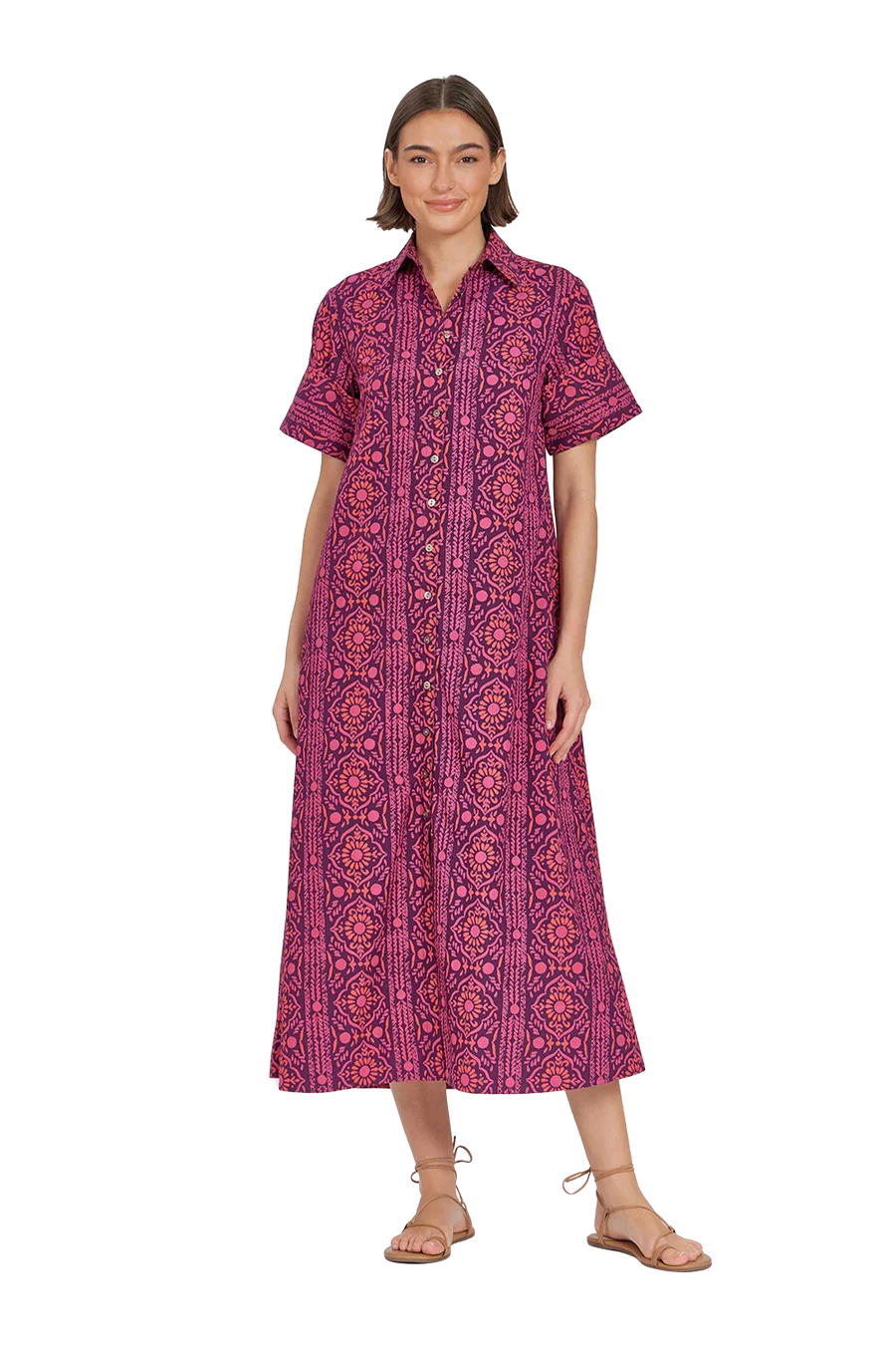 The Dock Dress is a short-sleeved, button-down shirt dress with a relaxed, A-line silhouette. The structured collar and full-length button placket give it a classic, tailored feel, while the loose fit adds an effortless, easygoing charm. Pair back to your favorite Summer sandals!