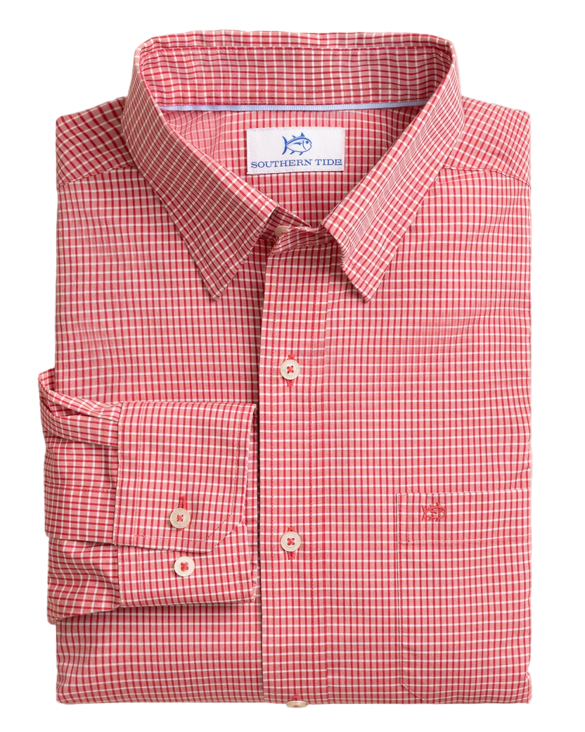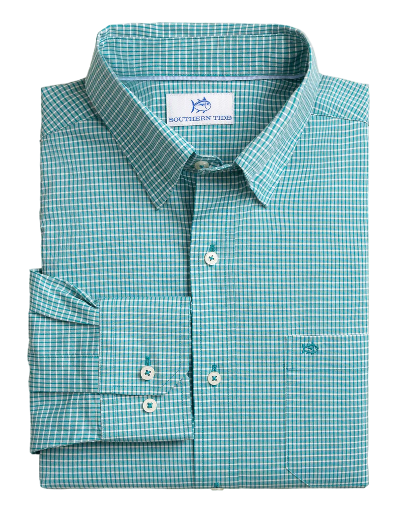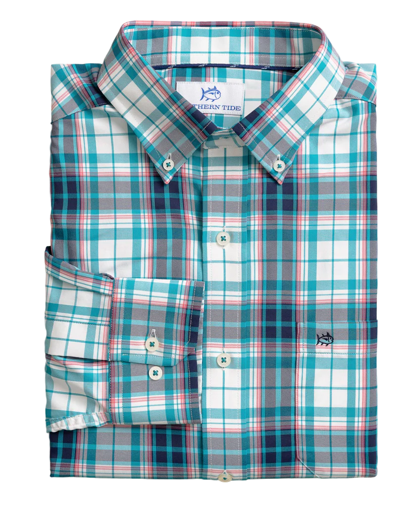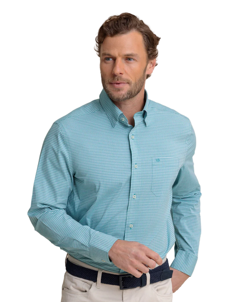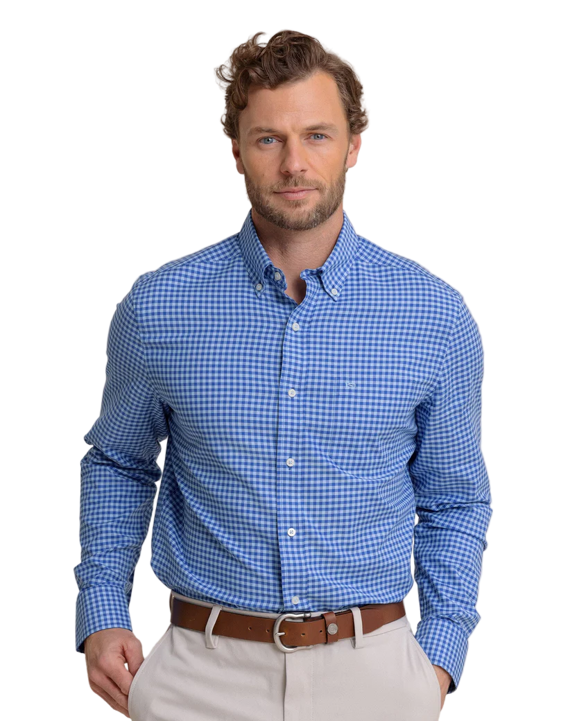 Lightweight, quick-drying, and made to keep you cool, the Crofton Plaid Charleston Long Sleeve Sport Shirt blends performance with classic Southern style. Crafted from wicking fabric with built-in cooling technology, it’s designed to move effortlessly from dockside afternoons to dinner downtown. A refined plaid pattern, hidden button-down collar, and adjustable cuffs create a polished look that’s comfortable in every season.