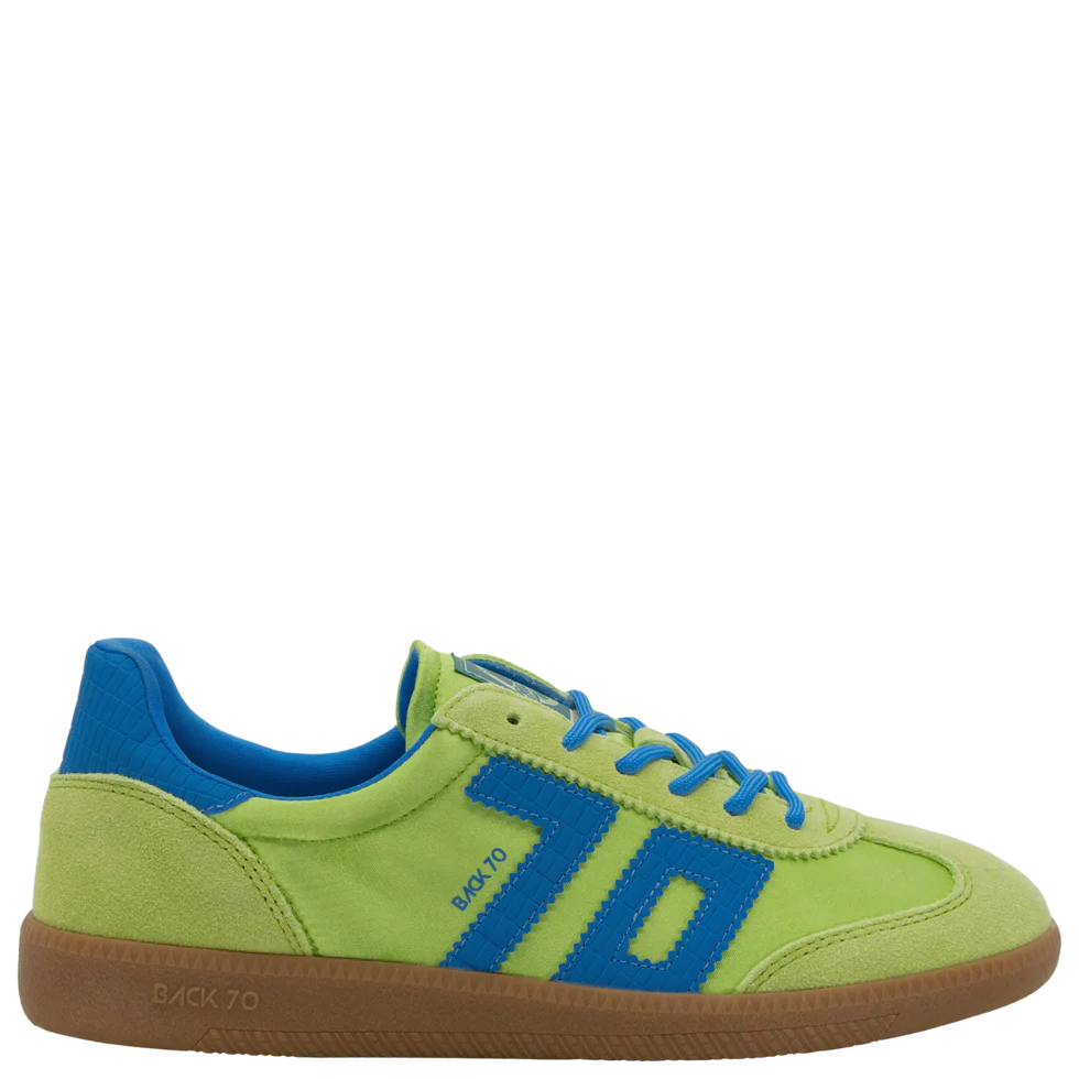 Looking for something fresh? This running-inspired fashion sneaker redefines functional fashion with sporty materials and bold motifs that blend highly technical design with a futuristic aesthetic. Hand crafted with precision and finished with Back 70's iconic "70" emblem and signature logo patch, this sneaker is the new "it" shoe for street style. Mix sport with luxury by pairing this style with track suits, airy layers, stretch skirts and deconstructed blazers for a style that's unexpected, and on the fast track for an immersive experience. Includes an essential woven cotton lace, as well as a contrasting fashion cord to unlock your creative inspirations.