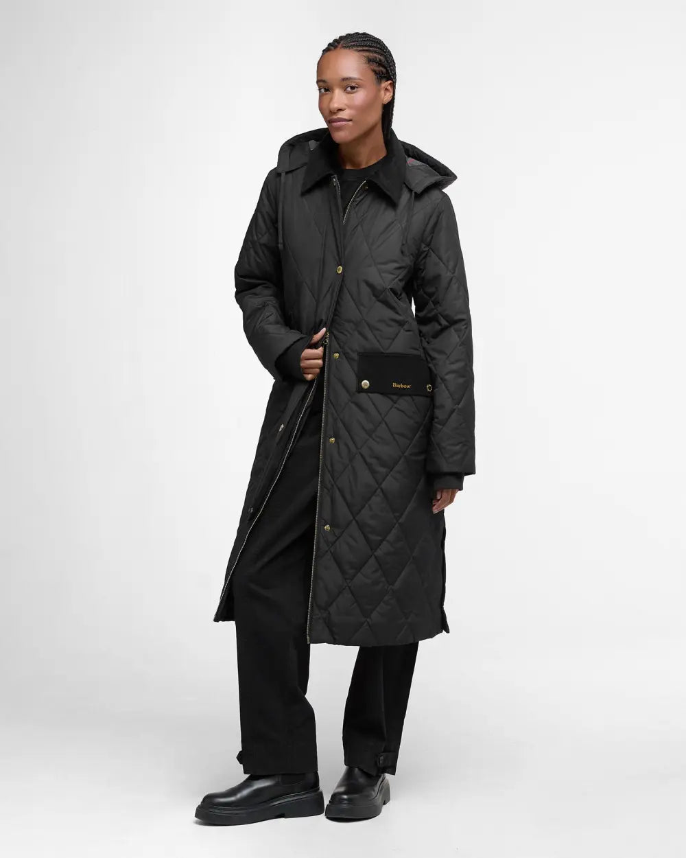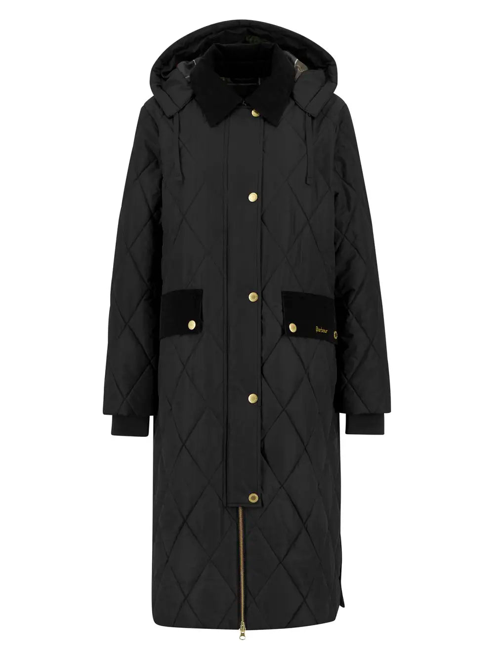 This shorter-length, diamond quilted jacket showcases the exclusive Barbour Farm Rio Pineapple print all over, complemented by exaggerated gathered sleeves for an added feminine touch. Trimmed with Barbour's signature cord collar and trims, patch pockets, D-ring and dual-branded studs, this oversized quilted jacket is perfect for expressing yourself with every wear.