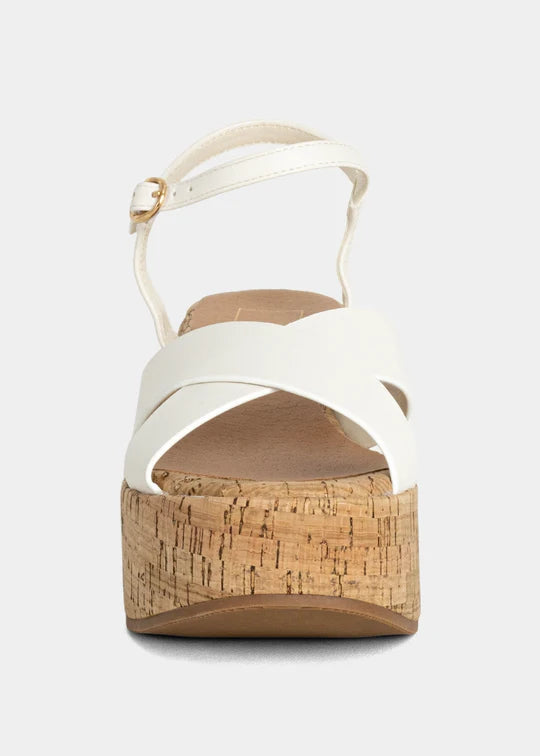 Regular price $80.00Cork meets cool. INDIANA in Bone pairs neutral faux leather straps with a cork-inspired platform for a fresh take on summer dressing. The soft off-white tone makes it the perfect match for breezy linen, crisp denim, or bright pops of color. Comfy, chic, and walkable-this platform sandal is your sunshine uniform.