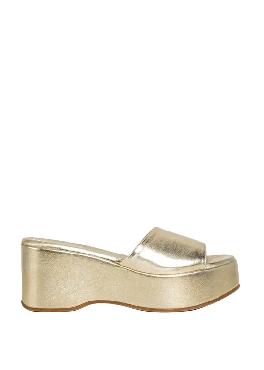 Regular price $85.00A little glam never hurt anyone, and IVY GOLD is here to turn heads. This striking platform sandal blends a sculptural silhouette with a radiant metallic finish for an effortless upgrade to any summer look. Whether you're heading to dinner, rooftop drinks, or dancing until sunrise, IVY is your golden ticket to comfort and confidence.