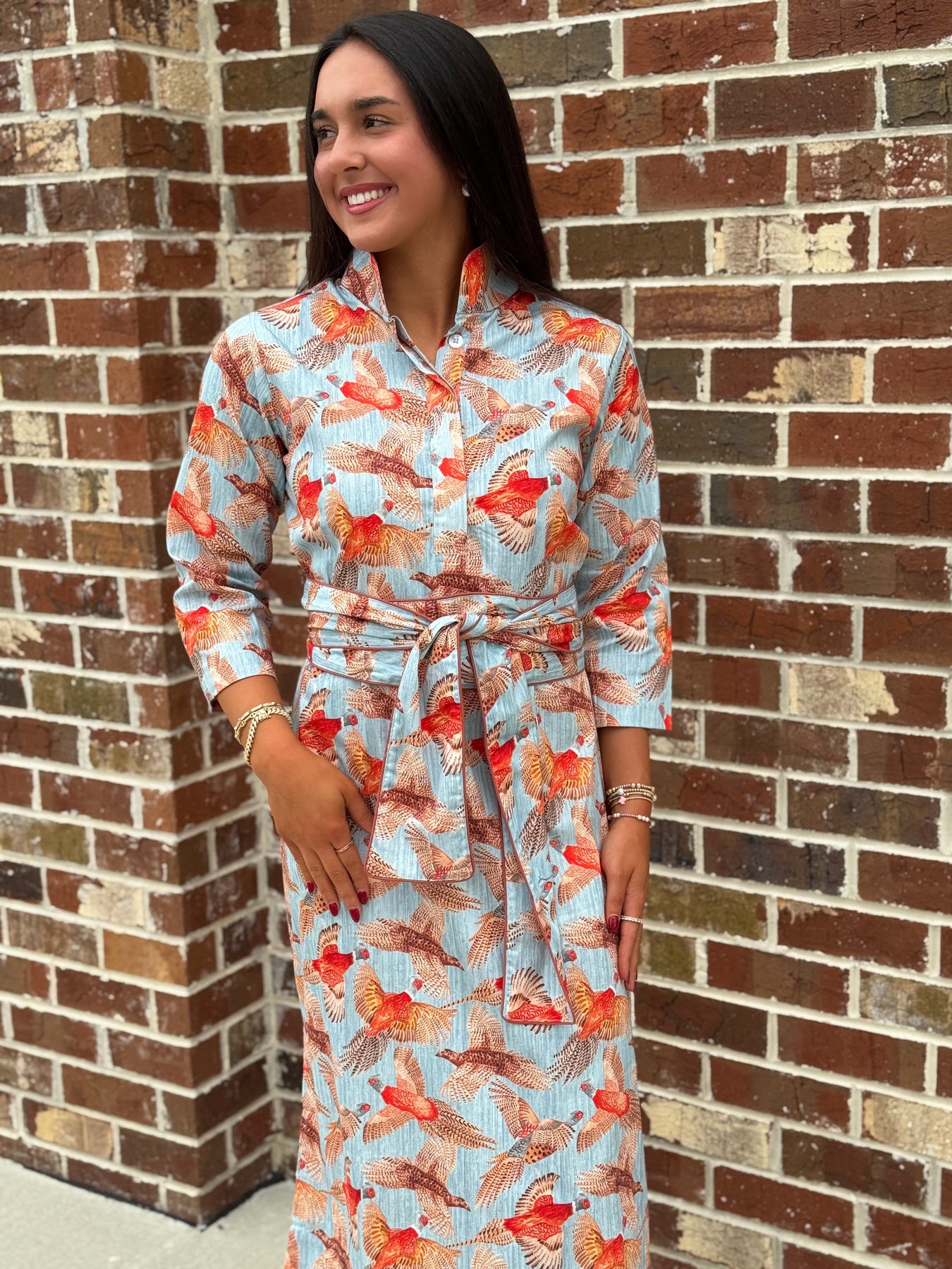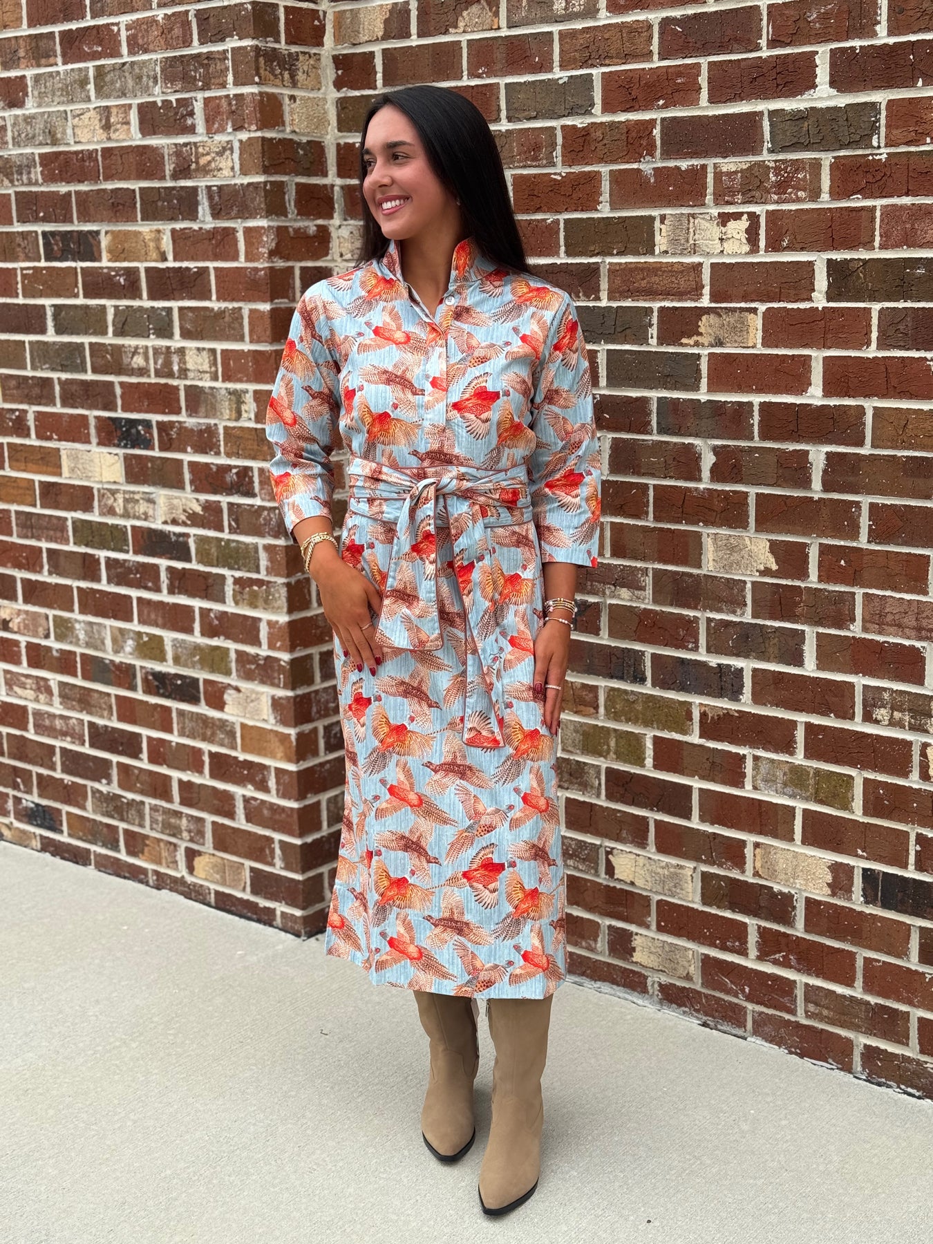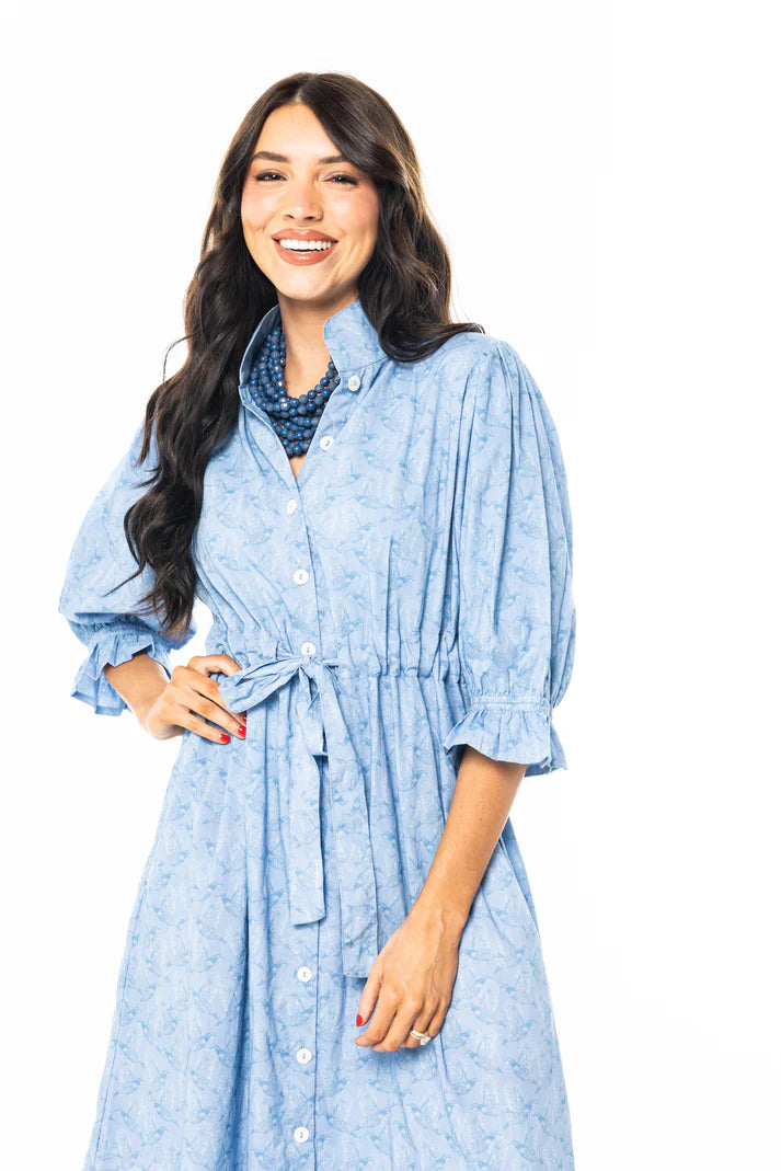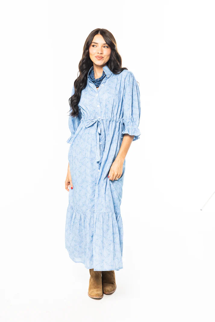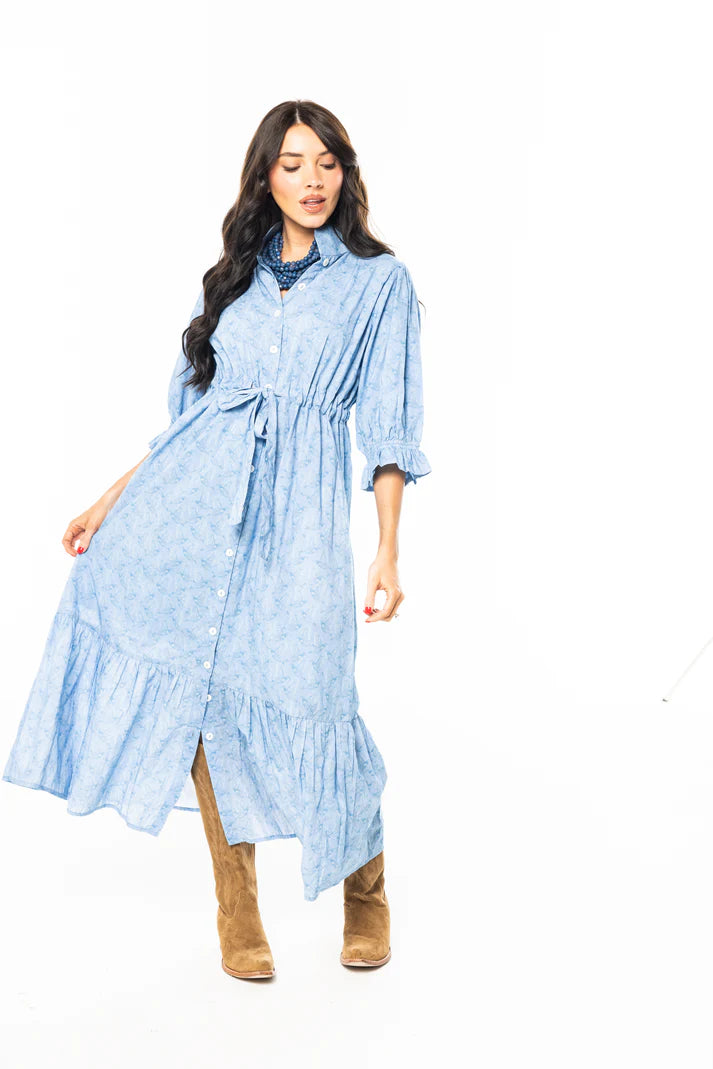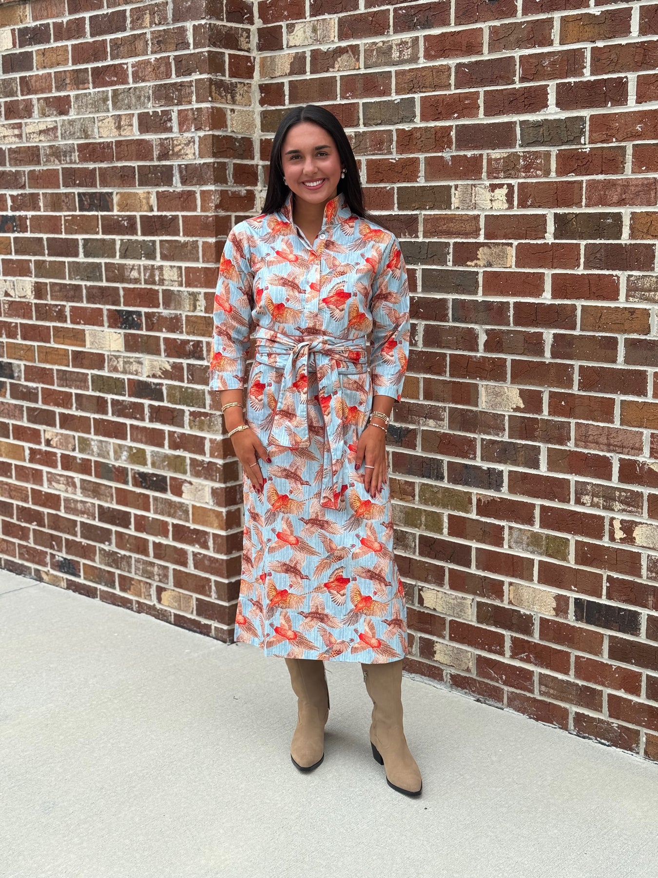 This "nod to mod" stand collar dress is the perfect "throw and go" piece! With an adjustable waist offering a tailored fit, this sundress will be an instant go to as we transition into fall. Our Fall Folk Collection with prints by Dallis Foshee will not disappoint.