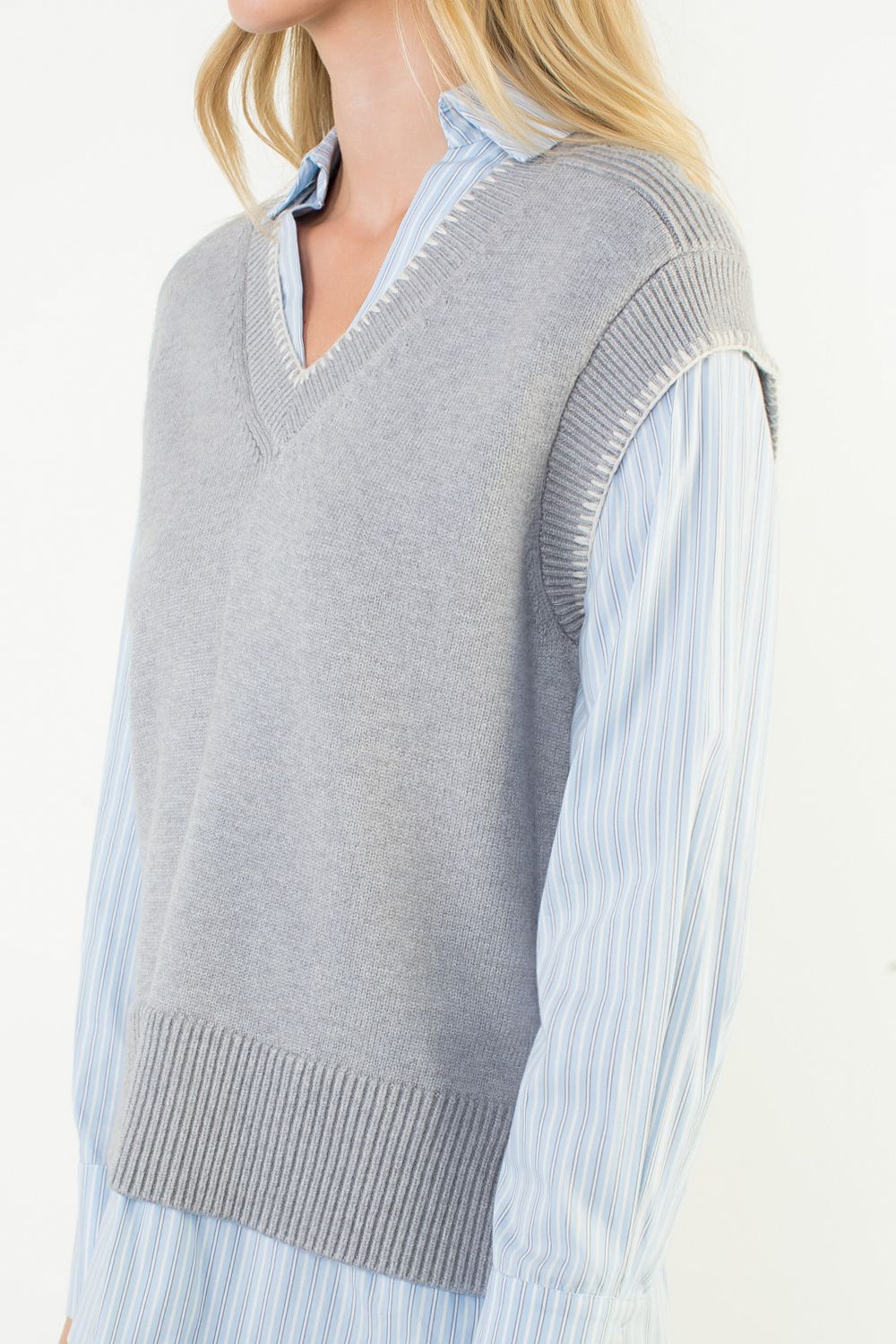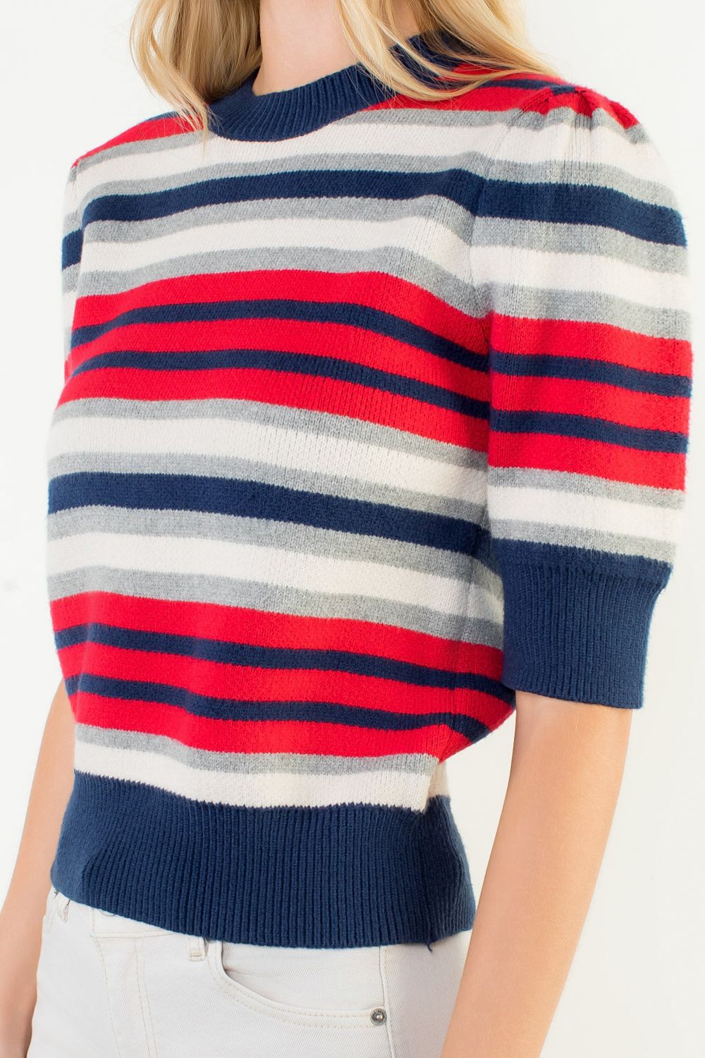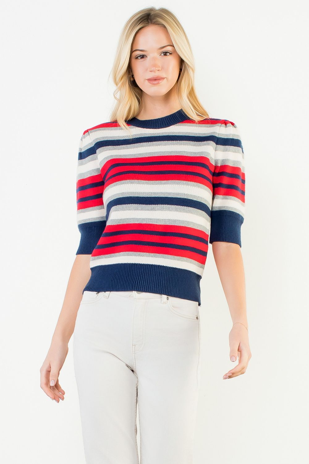 The Mona Top is Love the Label's take on a classic button-up.Offered in our classic cotton poplin in Mood Indigo,it features feminine details such as self-ruffles around the yoke and elongated sleeve cuffs,with shell buttons down the center front and at the cuff openings. Match back to the Marcy Midi Skirt for a chic resort look.