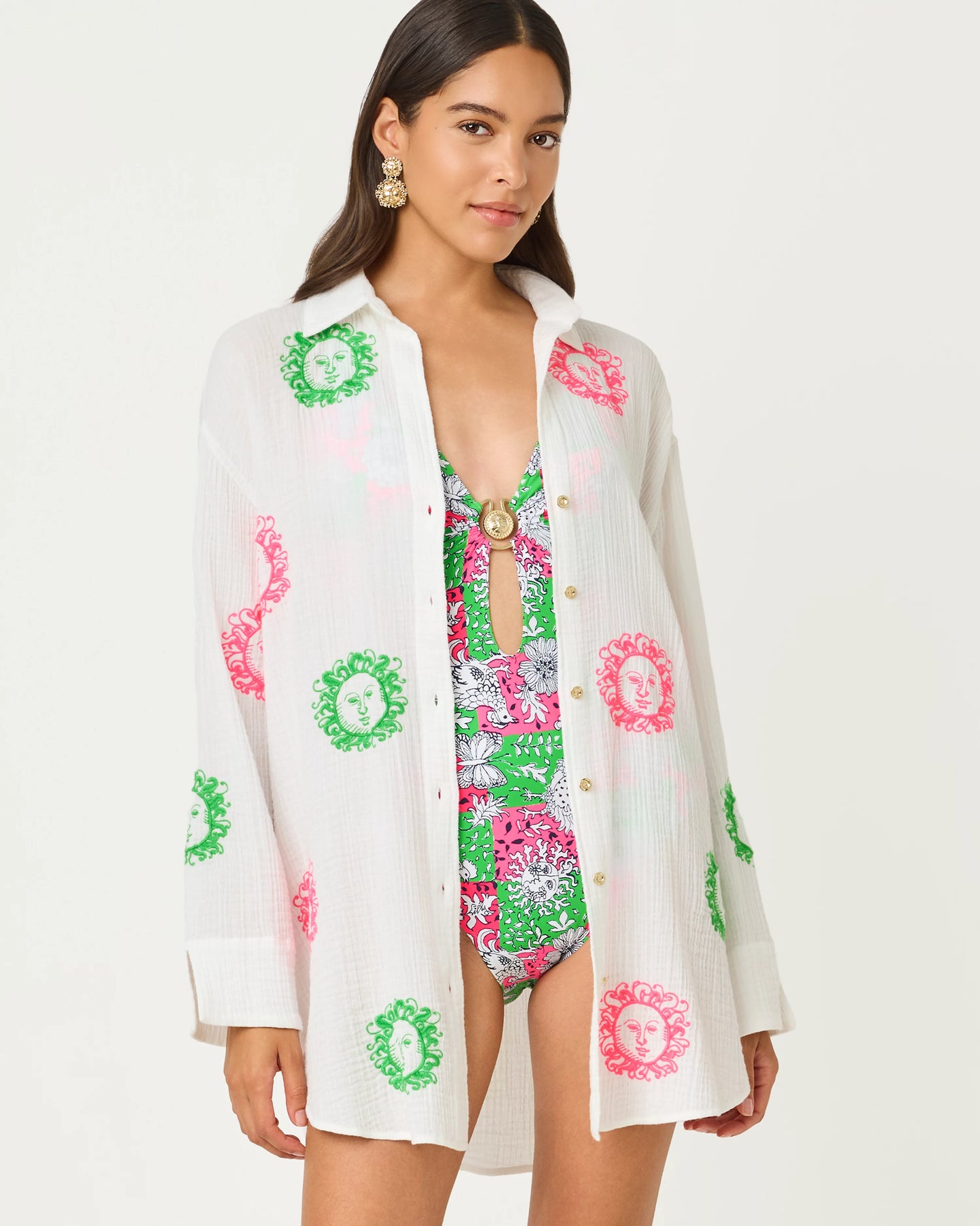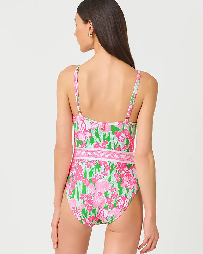 We dressed up the essential poolside flip flop with lots of Lilly details! Match your sandals to your printed swimwear or coordinate with a solid custom color suit.