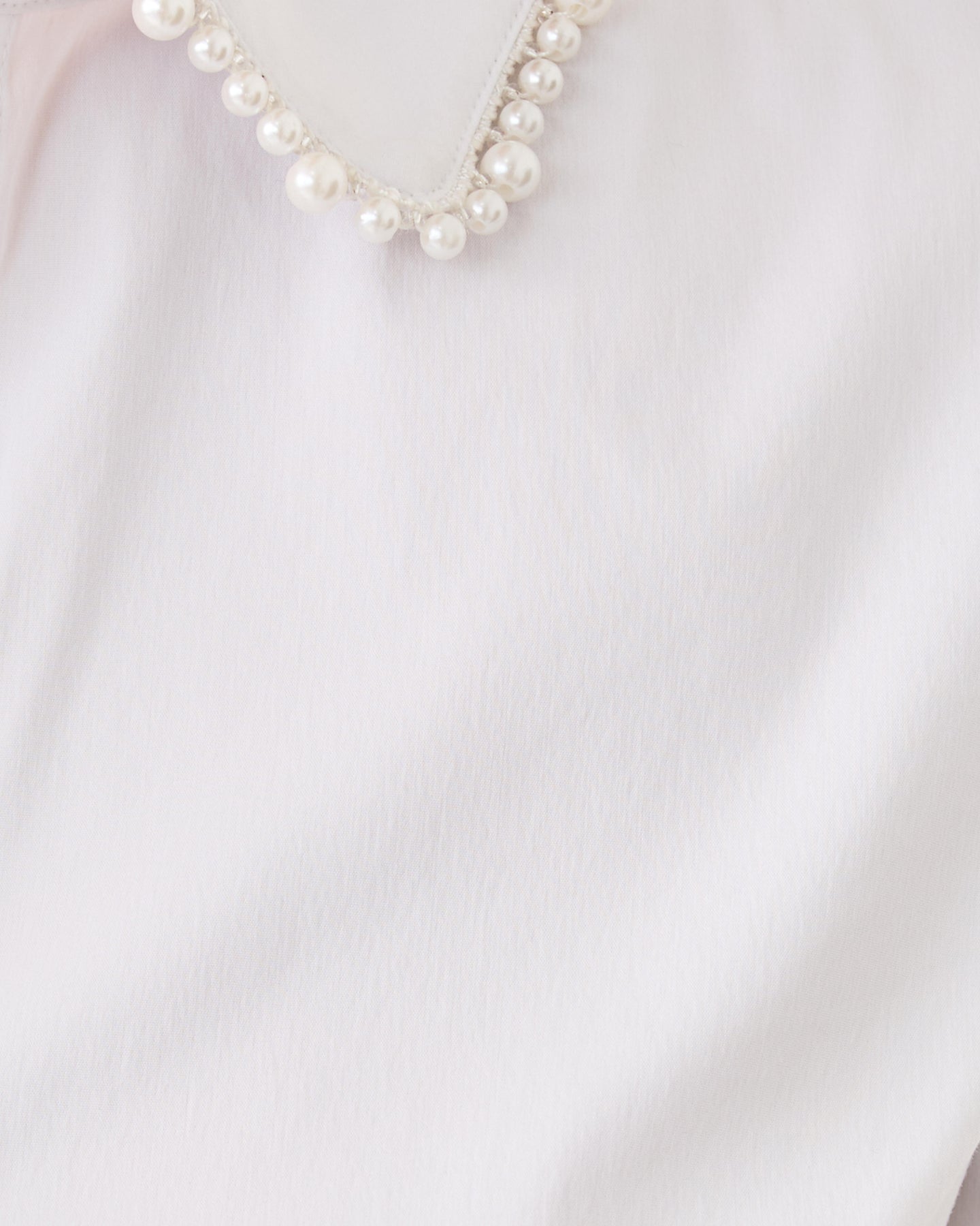 Easy fit, pullover blouse with gold buttons and bracelet-length sleeves.