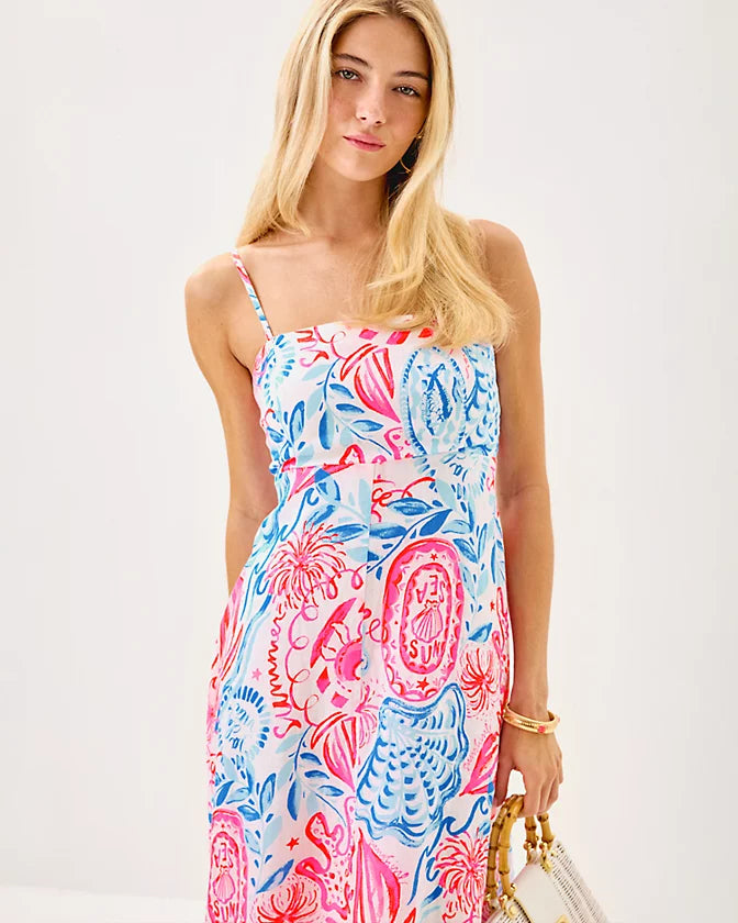 Ready for steamy summer days in our Seacoast Linen, the Jorgian Midi Dress features an empire waist silhouette and removable straps for two looks in one.