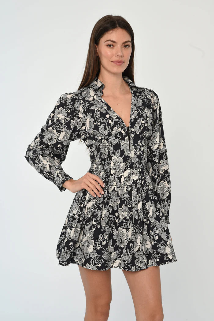 The Gia Mini Dress is Love the Label’s take on a classic shirt dress, with a twist. Offered in our classic Cotton Poplin in the Moonlit Floral Print, the dress features structured details such as a collared neckline and an exposed metal zipper at the center front. Gia also offers comfort with an entirely smocked waistband at the front and back. The skirt is softly gathered and perfect for twirling! Wear it with tall boots or layer with the Neva Jacket for a cool-girl look.