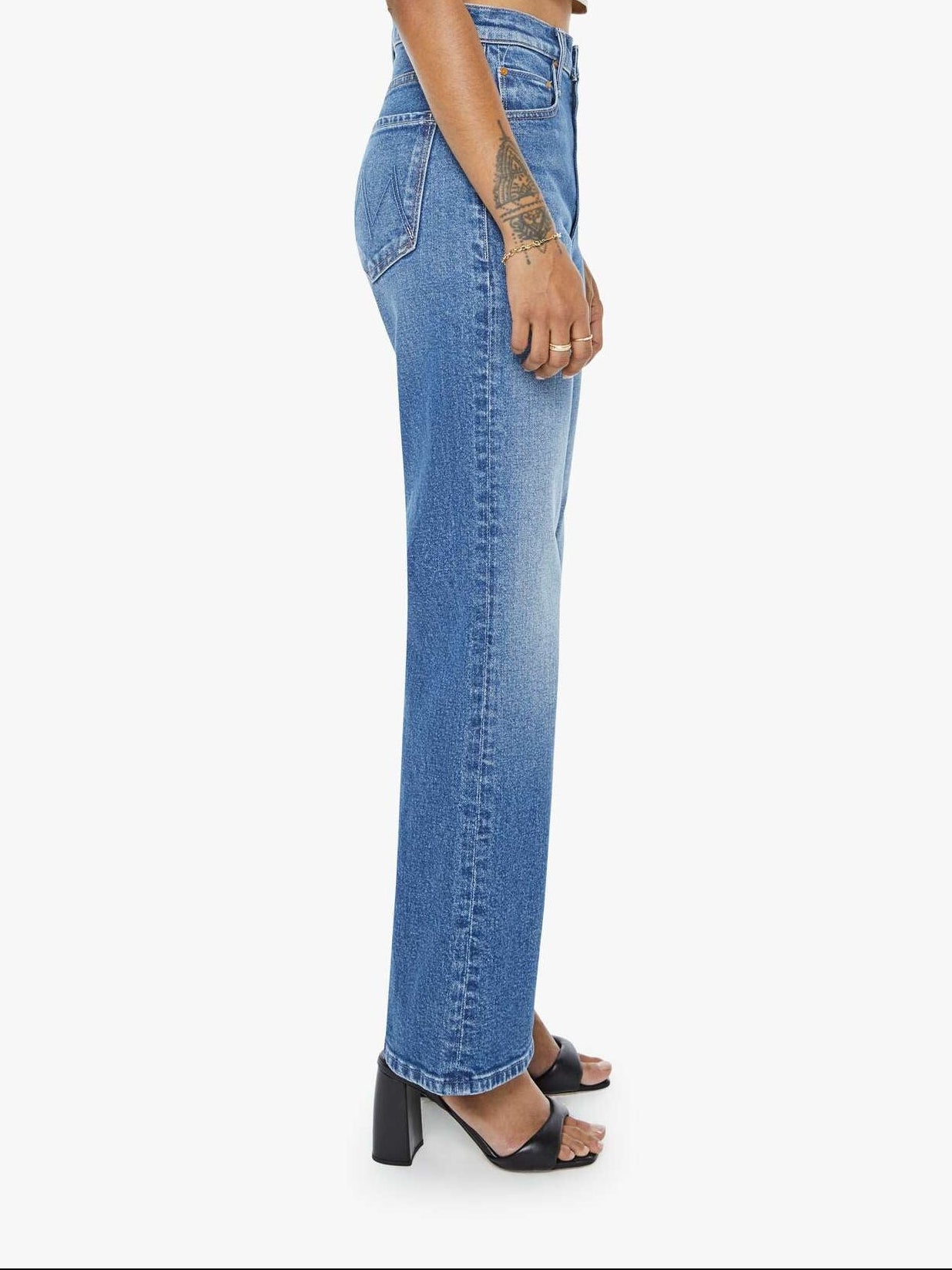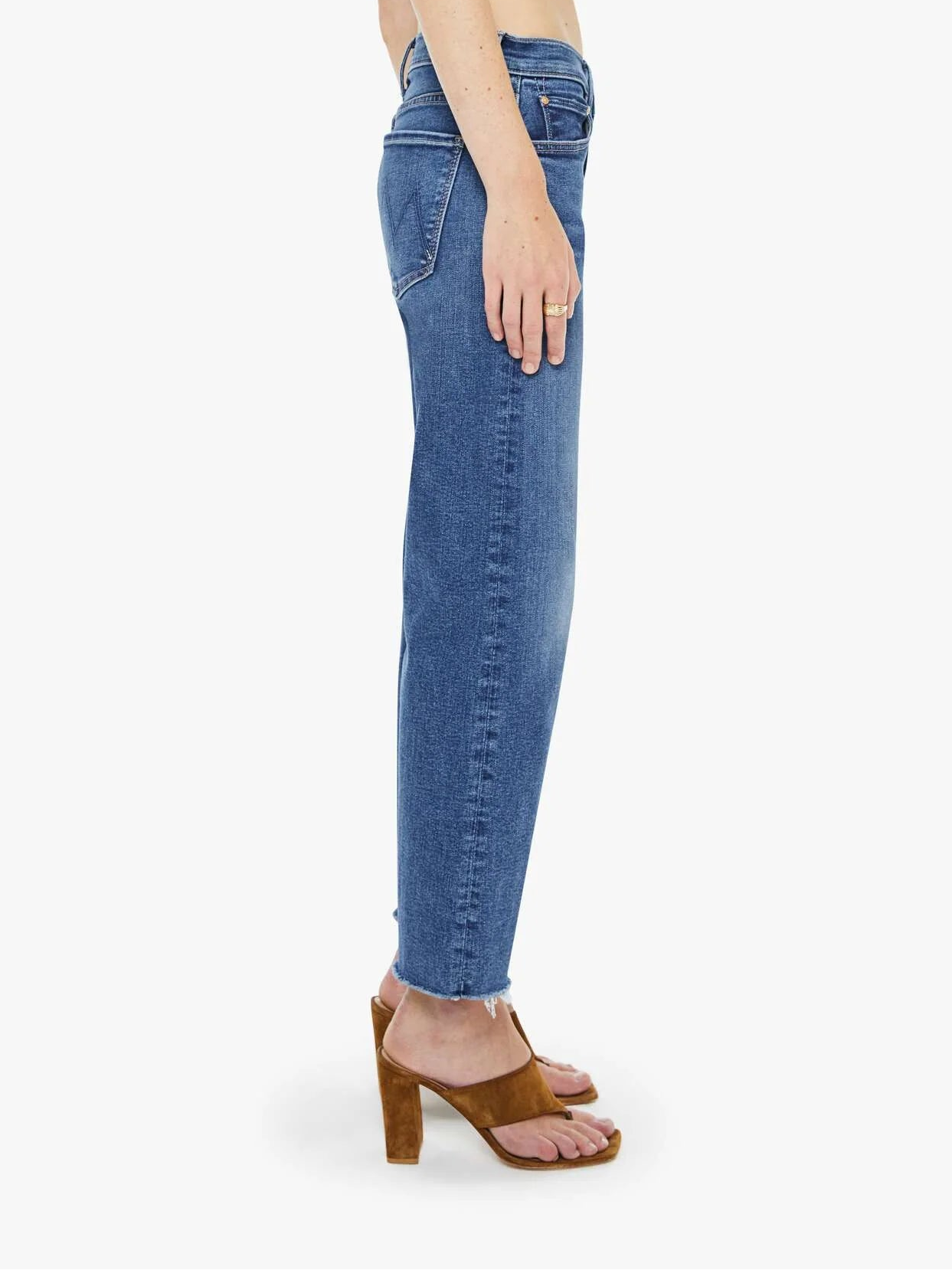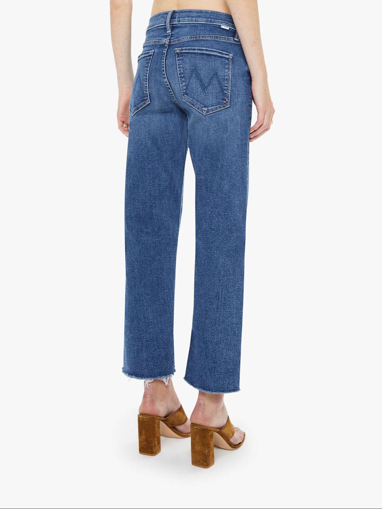 Mother's most popular jean with a mid-rise, straight leg, and a frayed hem. Made from stretch denim, Fancy Meeting You Here is dark blue with subtle whiskering and fading at the knees. Pair with your favorite fall outfit, or let it transitional you into spring with light sweaters and a trench, this jean is always in style.