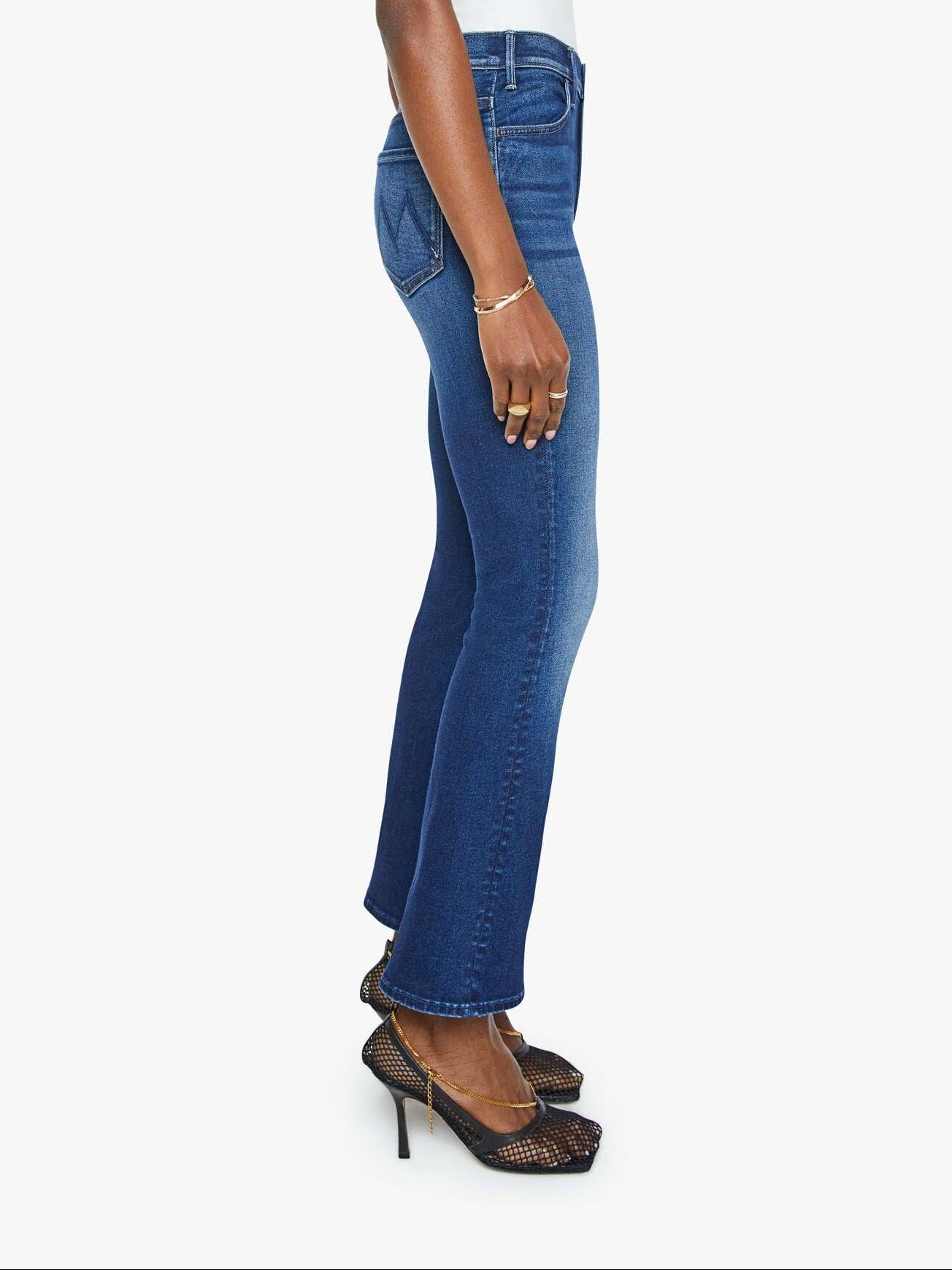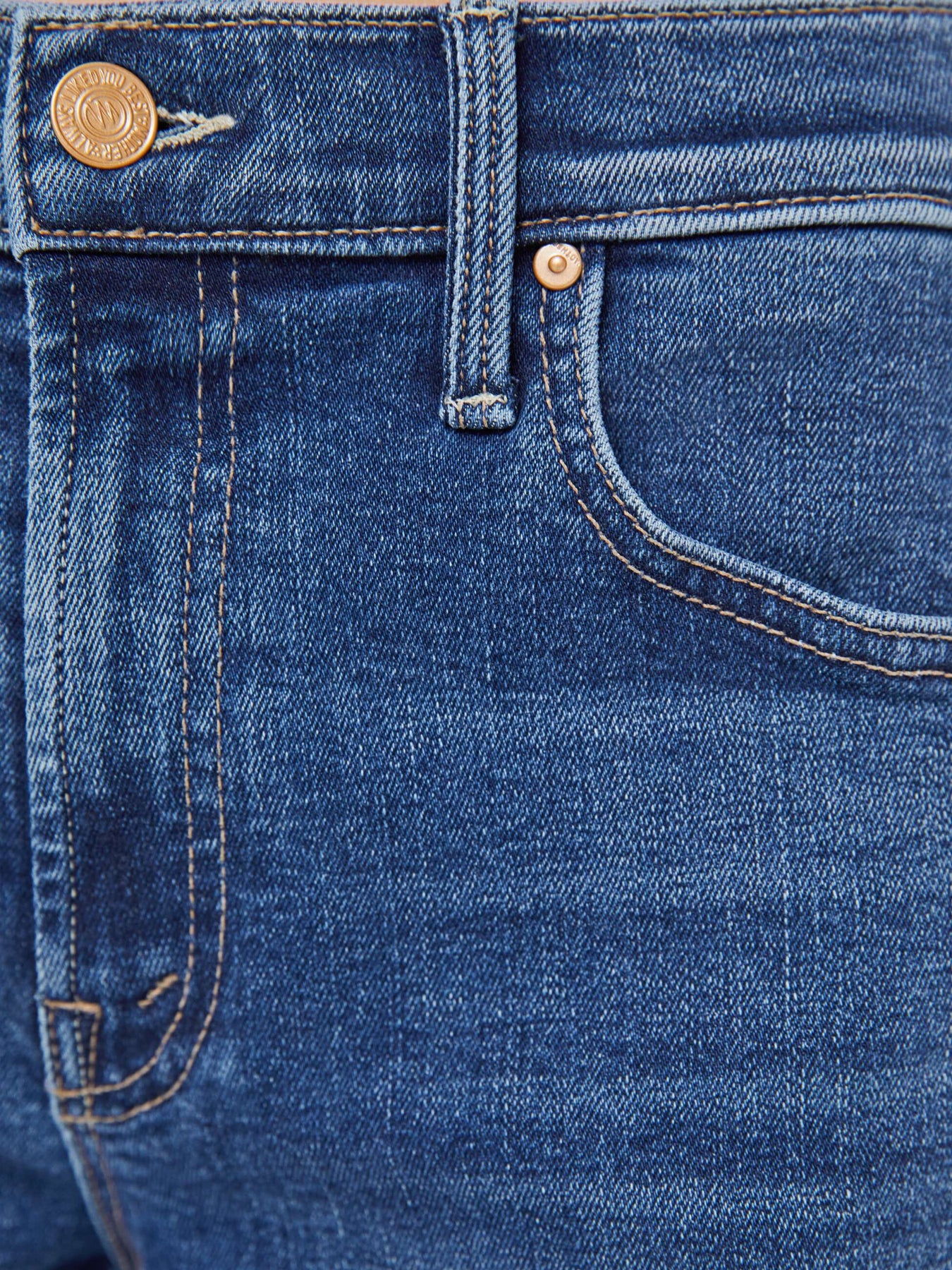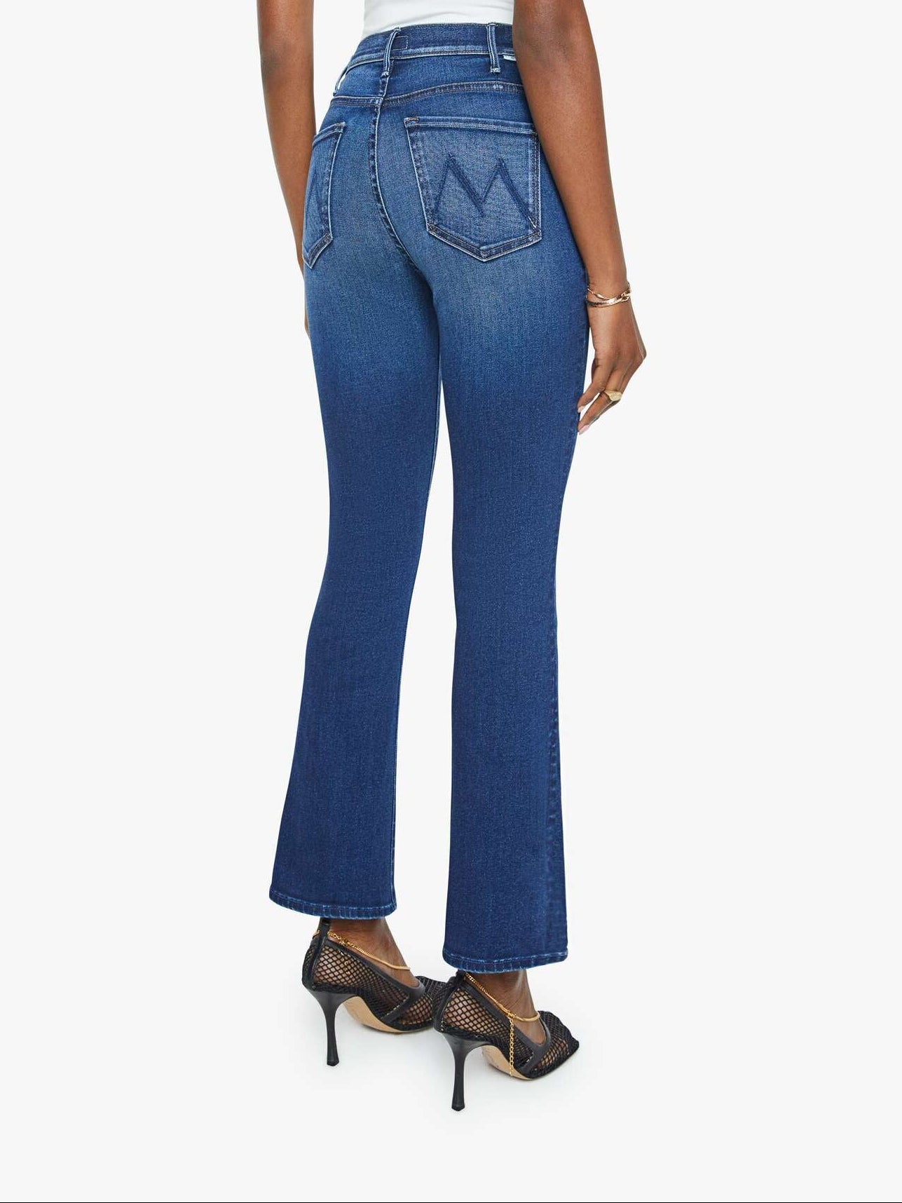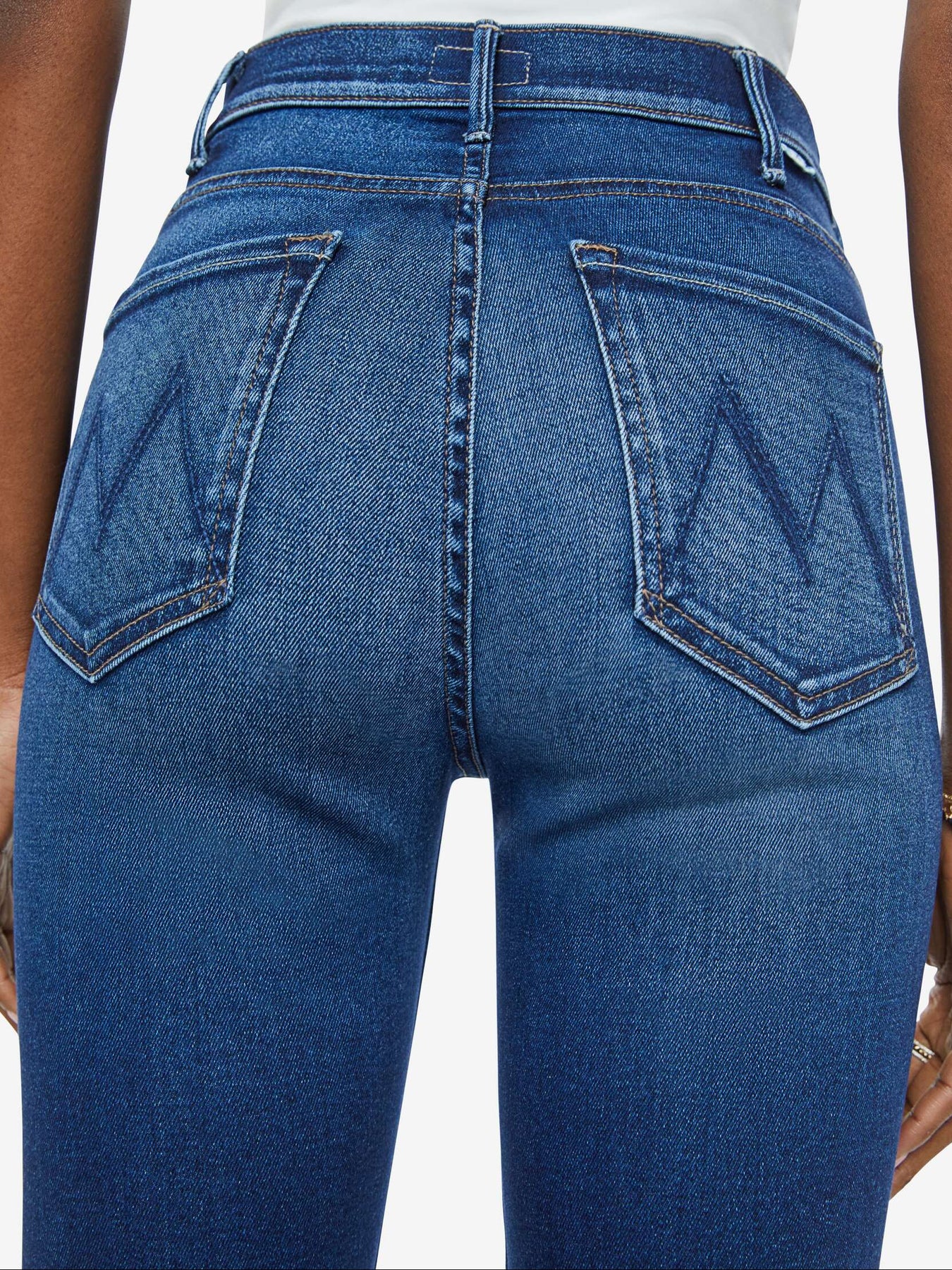 Mother's most popular jean with a mid-rise, straight leg, and a frayed hem. Made from stretch denim, Fancy Meeting You Here is dark blue with subtle whiskering and fading at the knees. Pair with your favorite fall outfit, or let it transitional you into spring with light sweaters and a trench, this jean is always in style.