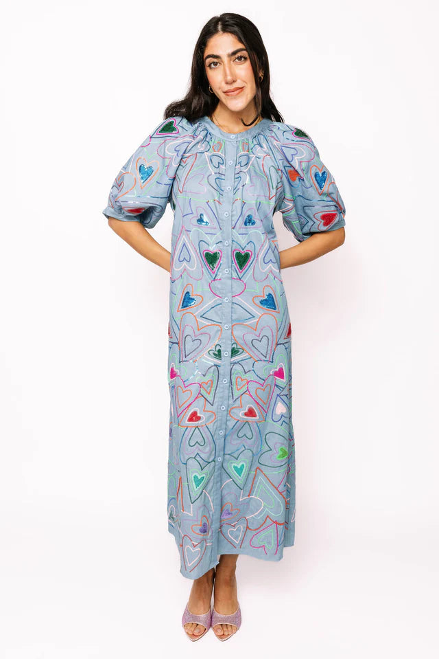 The Hampton Dress in Peach Jubilee is a playful yet polished statement with a distinctly feminine spirit. Designed with an easy, relaxed shape, this style features a mandarin-style collar, puff sleeves, and an asymmetrical layout that creates visual interest and movement. Peach Jubilee showcases a vibrant mix of patterns, rendered in a luxe jacquard that offers soft structure and a subtle glow. Lighthearted and confident, this dress strikes the perfect balance between flirty charm and elevated design.