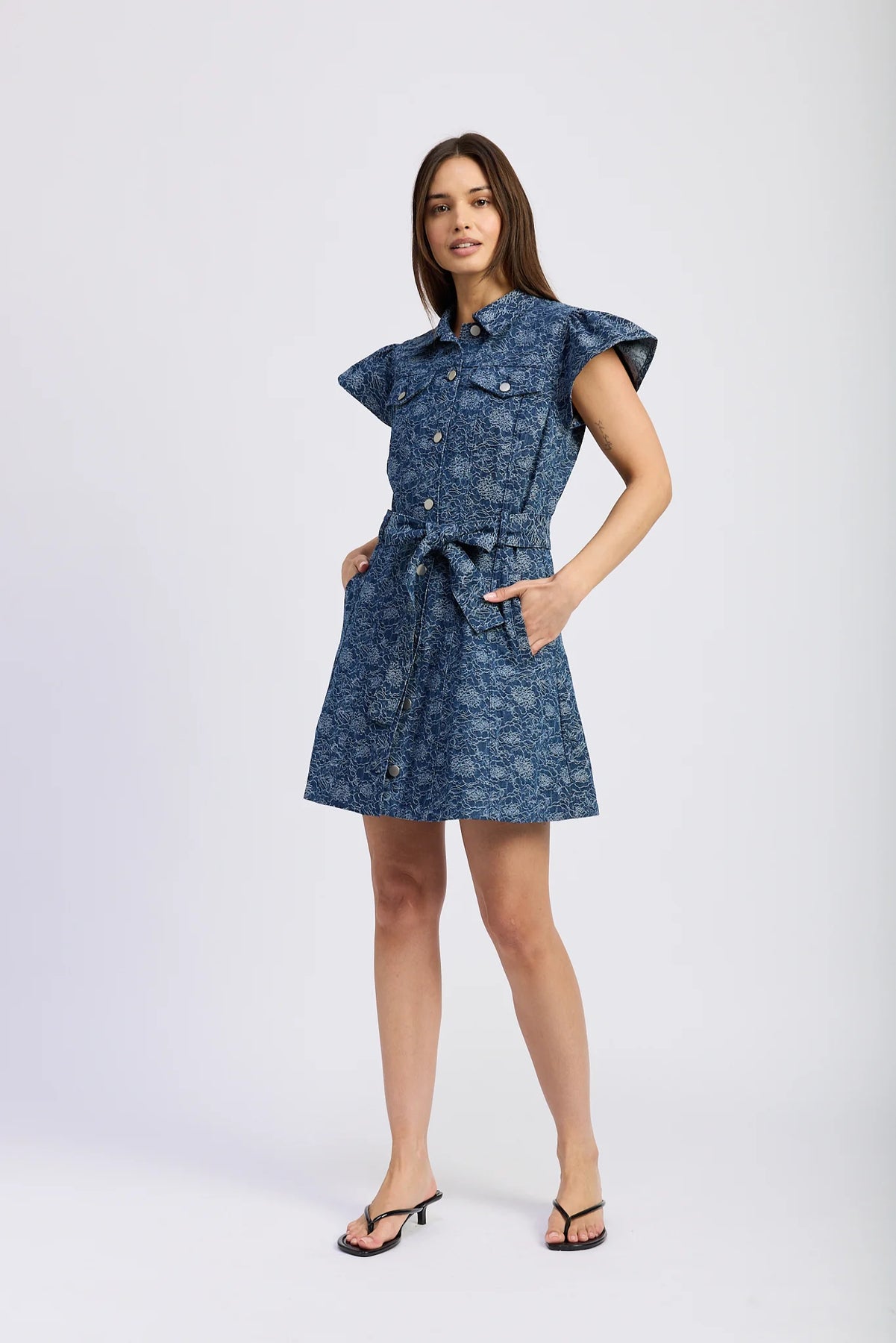 This cheerful mini dress brings playful polish to everyday dressing. Designed in a crisp cotton sunset toile print, it features smocked detailing at the chest and sleeves, voluminous puff sleeves with ruffled cuffs, and a flattering A-line silhouette. The ruffled stand collar and hidden side pockets add charm and function to this easy, standout piece.