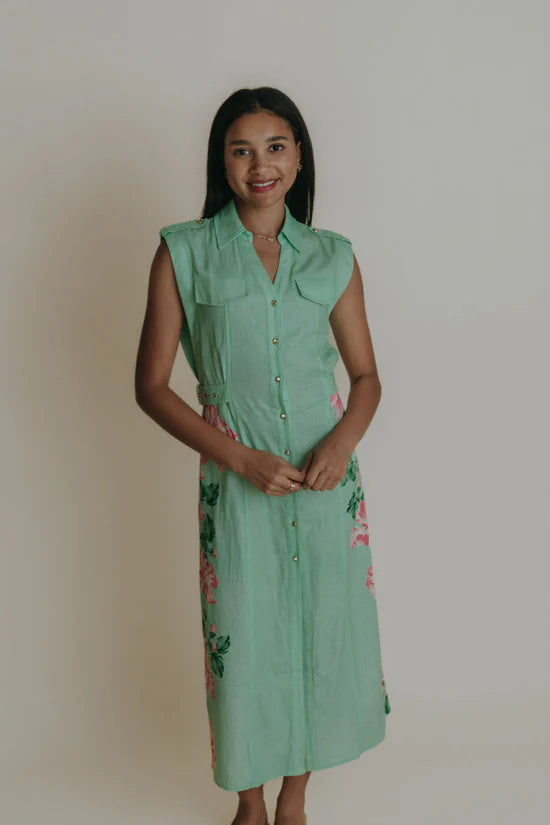 The Lainey Dress features a classic button-up front with a flattering belted waist, creating a polished silhouette. Its versatile design makes it perfect for both casual days and professional settings, offering comfort and style in one easy-to-wear piece.