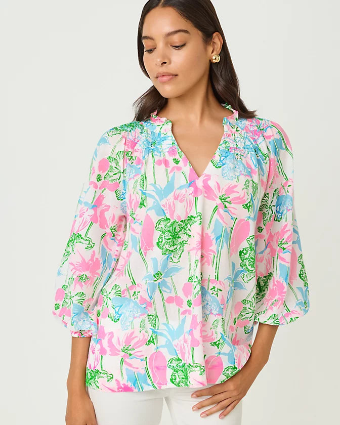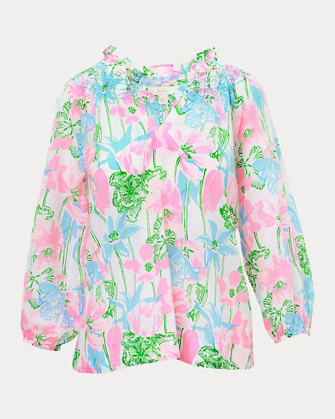 This top runs true to size. If you want a roomy fit, consider sizing up.