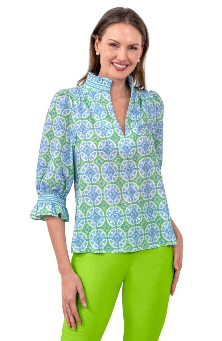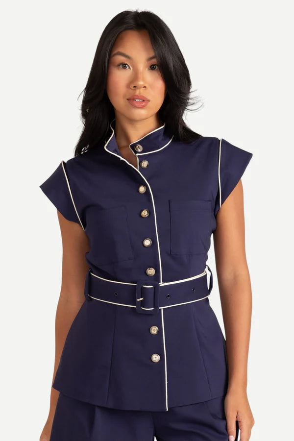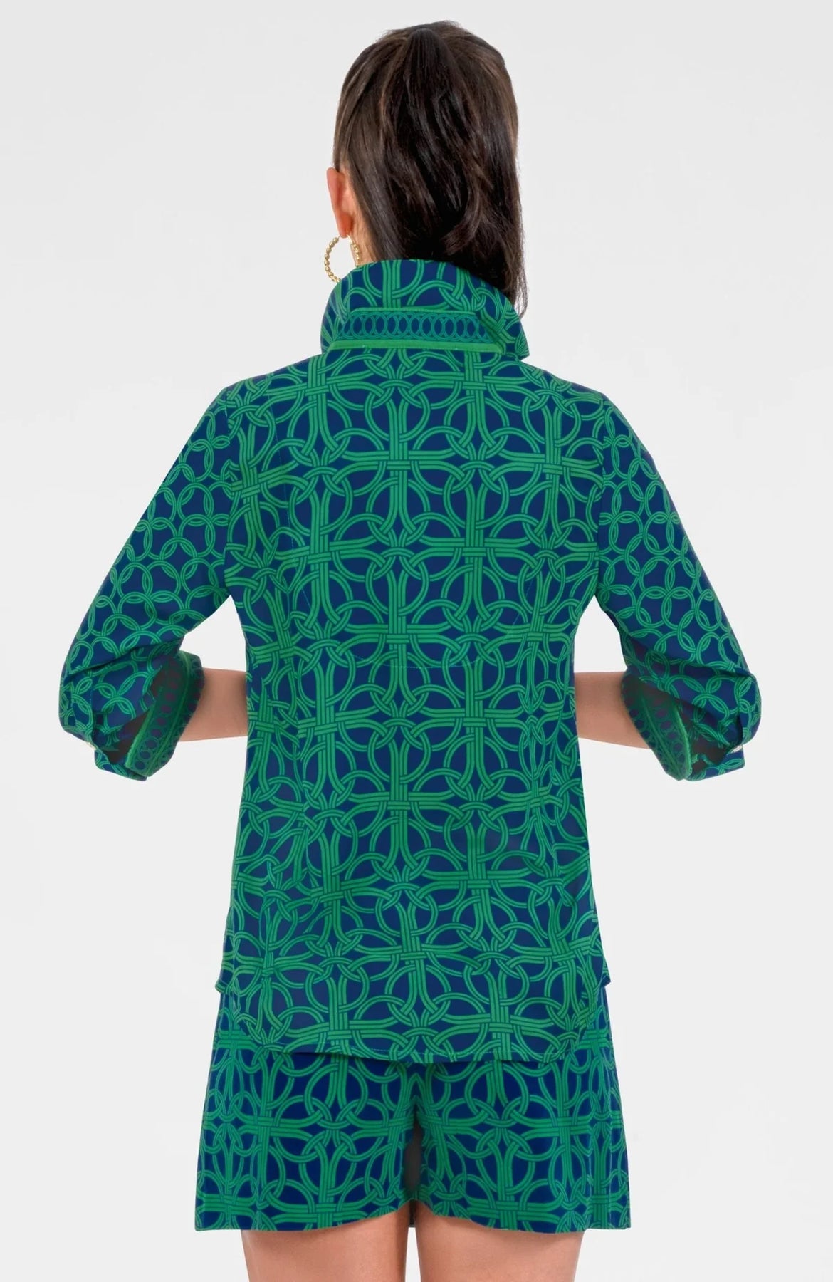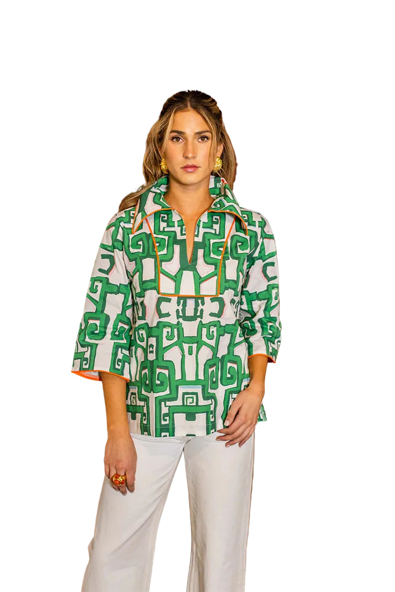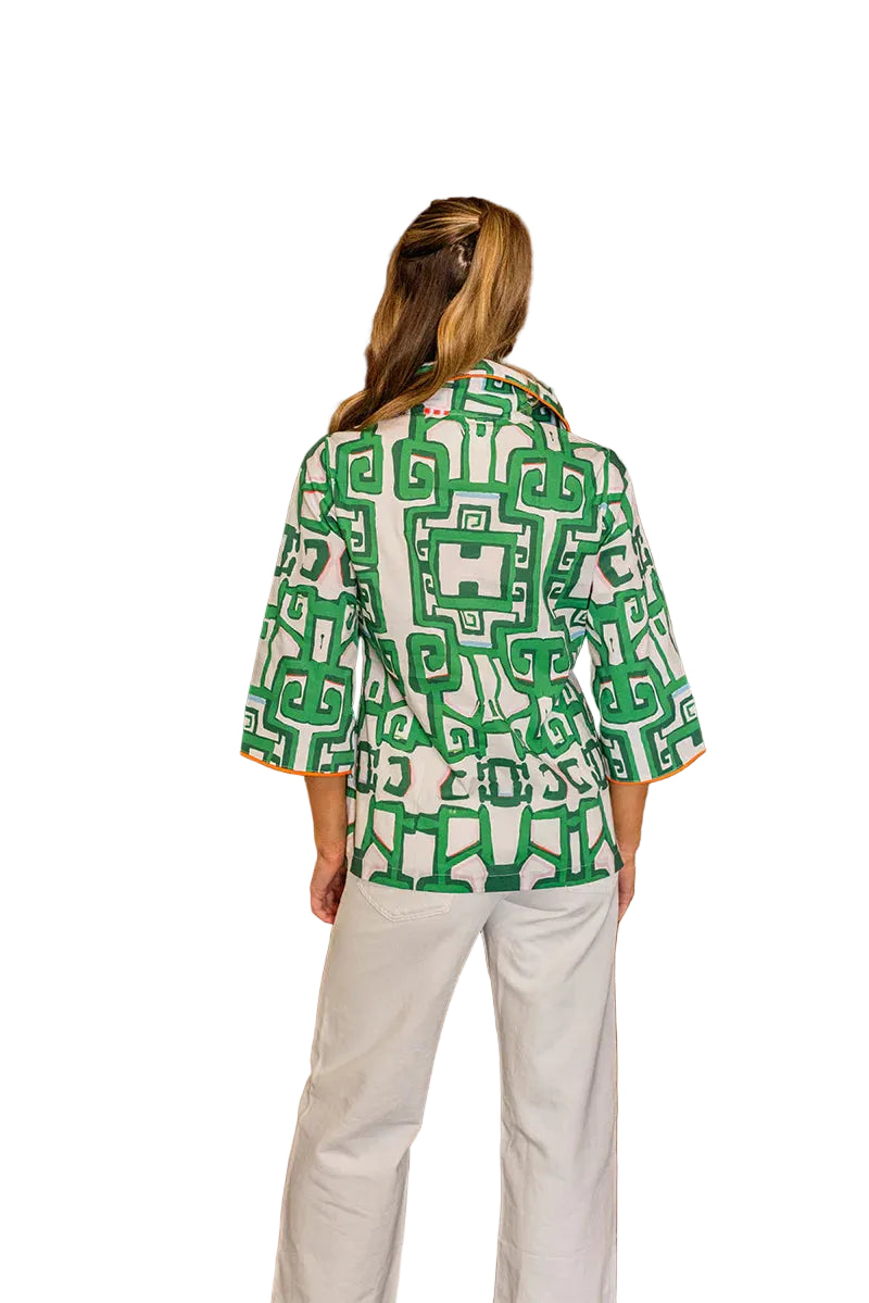 Our Jacks top is just right with its classic stand up collar and full 3/4 sleeves with a double piped cuff for the perfect finish.