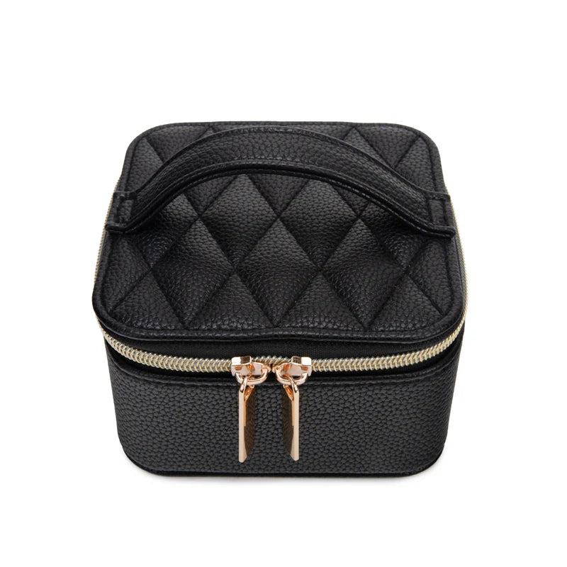 Regular price $30.00Meet the Leah 5 Eyewear & Jewelry Case - your ultimate accessory game-changer! Crafted from luxurious pebbled vegan leather with a soft velour interior, it’s designed to keep your eyewear and jewelry safe and sound. Its sleek snap closure ensures everything stays compact and portable, while the handy hanging loop offers easy access wherever you are. Inside, find a built-in mirror and smart compartments for seamless organization. It fits up to 2 pairs of sunglasses or reading glasses, secures 21 stud earrings with a special earring card, and even has a lift-up feature for your larger earrings. Plus, with 5 loop snaps, your bracelets and necklaces stay free from tangles, and 3 pillow rolls keep your rings snug. Get ready to elevate your accessory storage with style and sophistication!