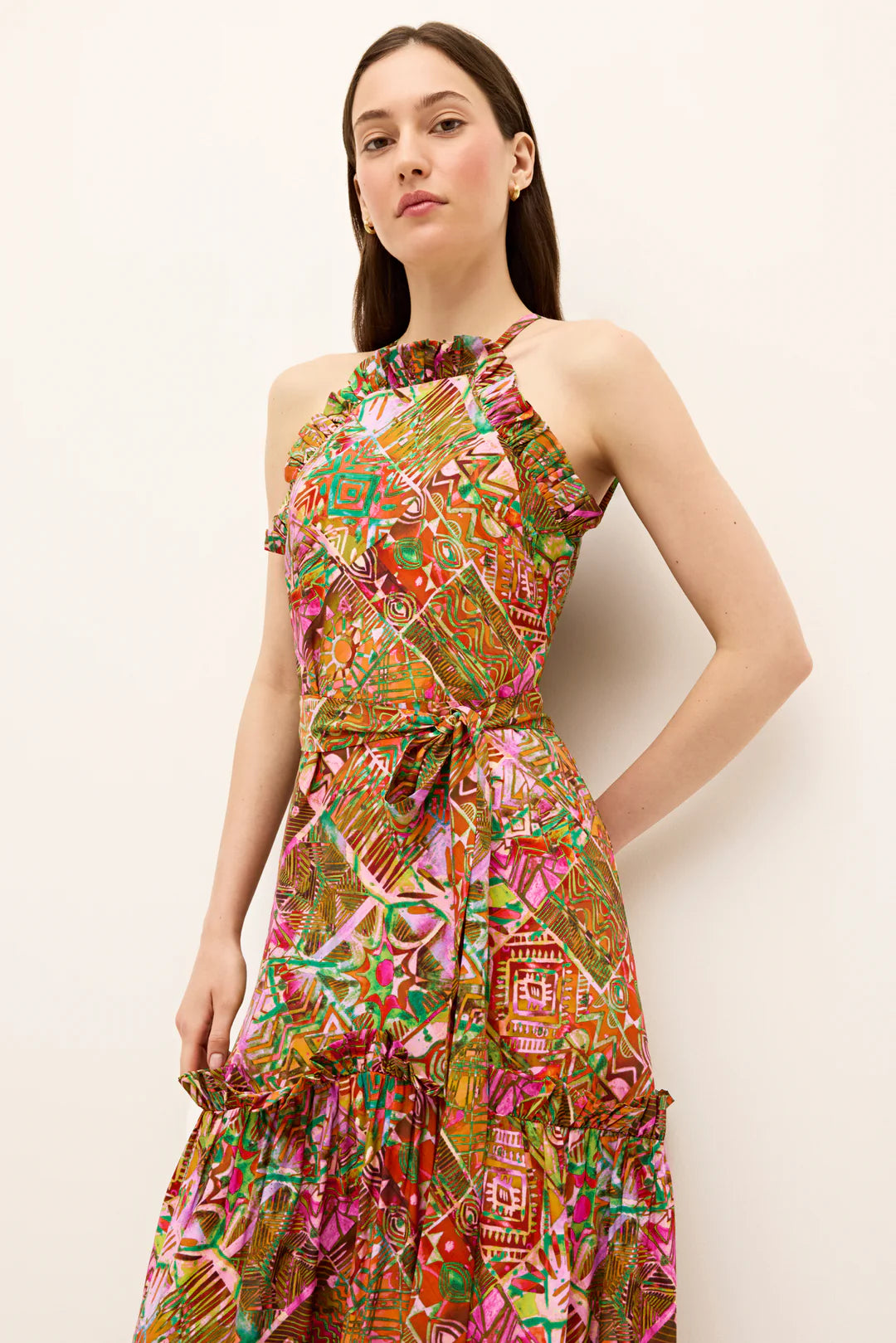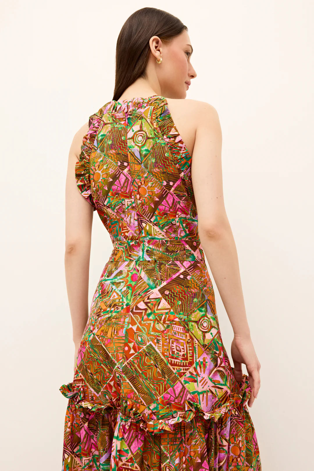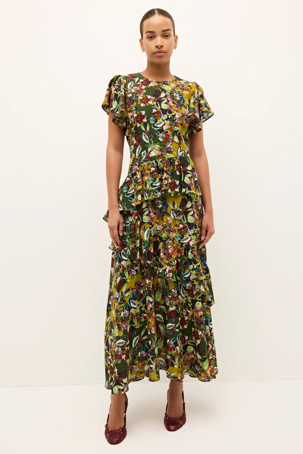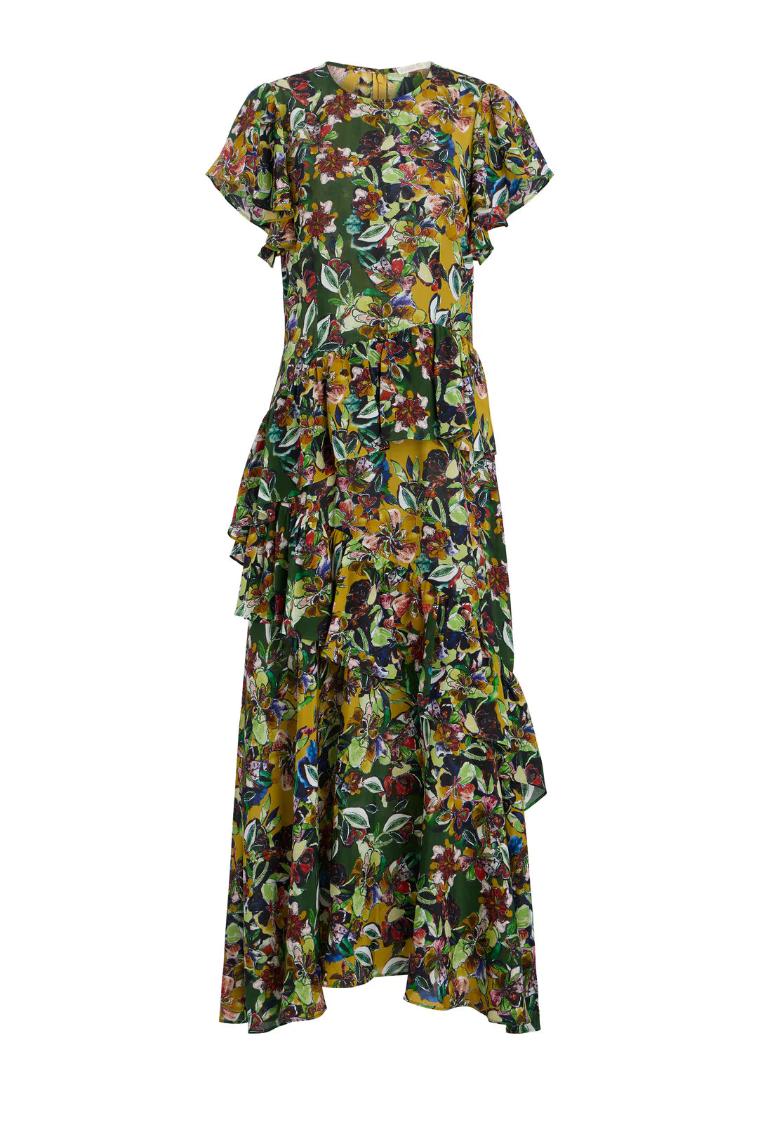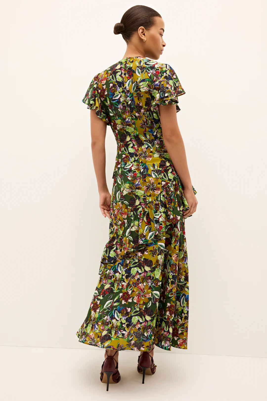Your new fall occasion dress has arrived in all of Quinby's tiered, flounced, and floral splendor. Airy silk mix meets bloom, our painterly fall scorchd botanical print that will be the star of every party. The flattering effect of the fitted top that cascades into a ruffled skirt is both comfortable and effortlessly versatile, taking you from baby to bridal shower or an elevated date night.