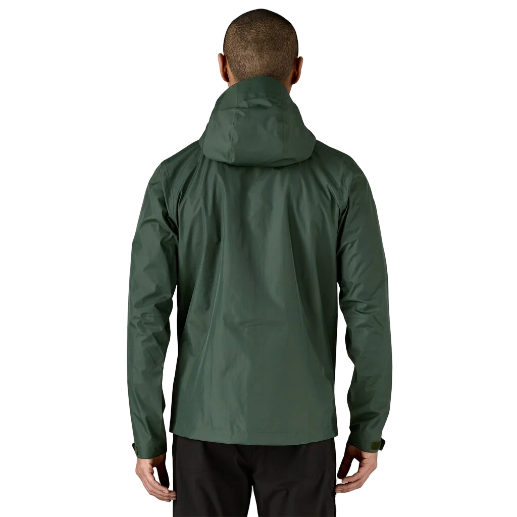 A lightweight value-oriented 3-layer waterproof breathable rain shell jacket from Patagonia. The best price available from any competing brand for a 3-layer laminated shell of this level of design, features, and materials. This jacket is a lot more durable than 2 and 2 & 1/2-layer counterparts from other brands at the same price level, which do not have the additional thin fabric laminated on the inside of the jacket to protect the actual waterproof membrane from abrasion. A rain jacket that works, and one that will last you through lots of use without breaking the bank.