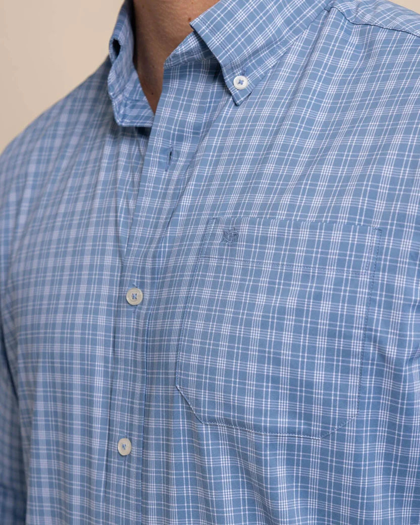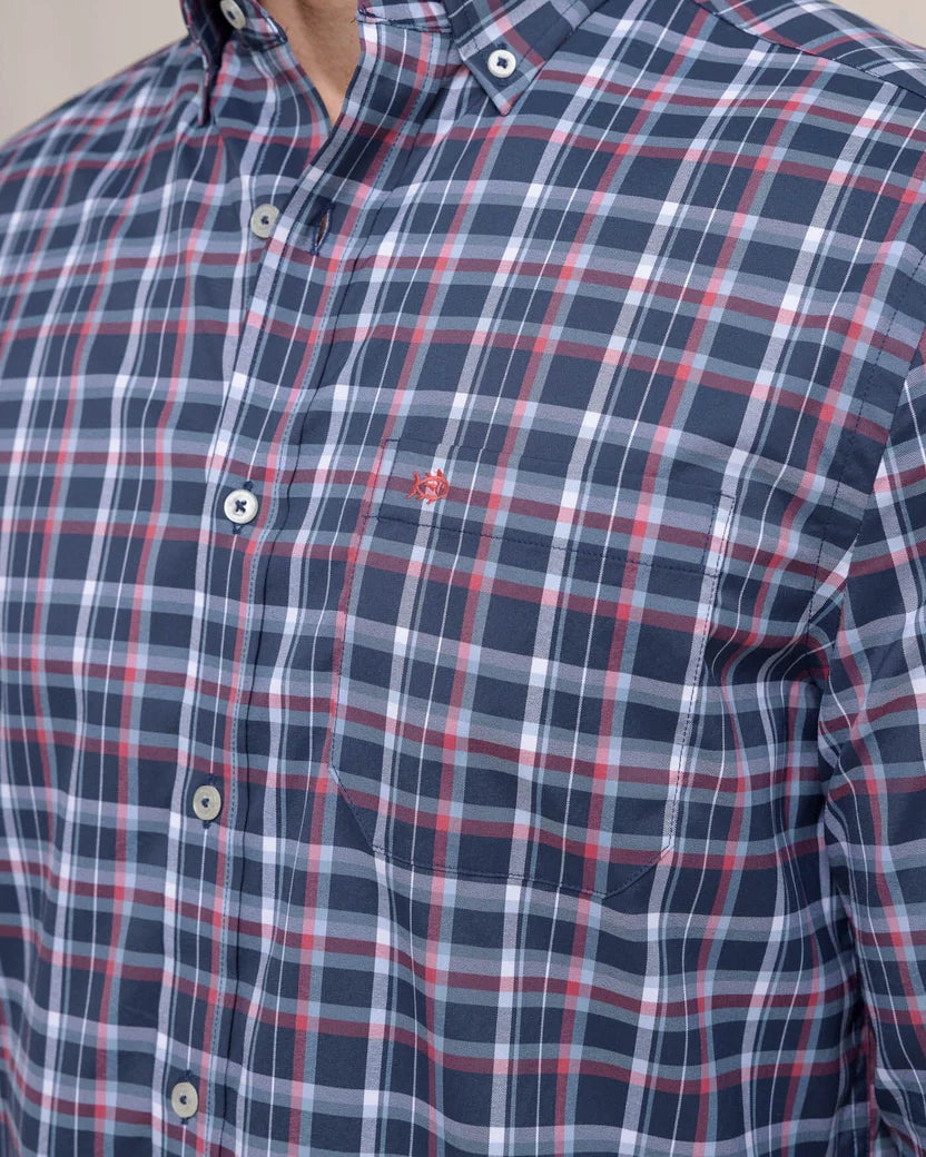 Lightweight, quick-drying, and made to keep you cool, the Crofton Plaid Charleston Long Sleeve Sport Shirt blends performance with classic Southern style. Crafted from wicking fabric with built-in cooling technology, it’s designed to move effortlessly from dockside afternoons to dinner downtown. A refined plaid pattern, hidden button-down collar, and adjustable cuffs create a polished look that’s comfortable in every season.