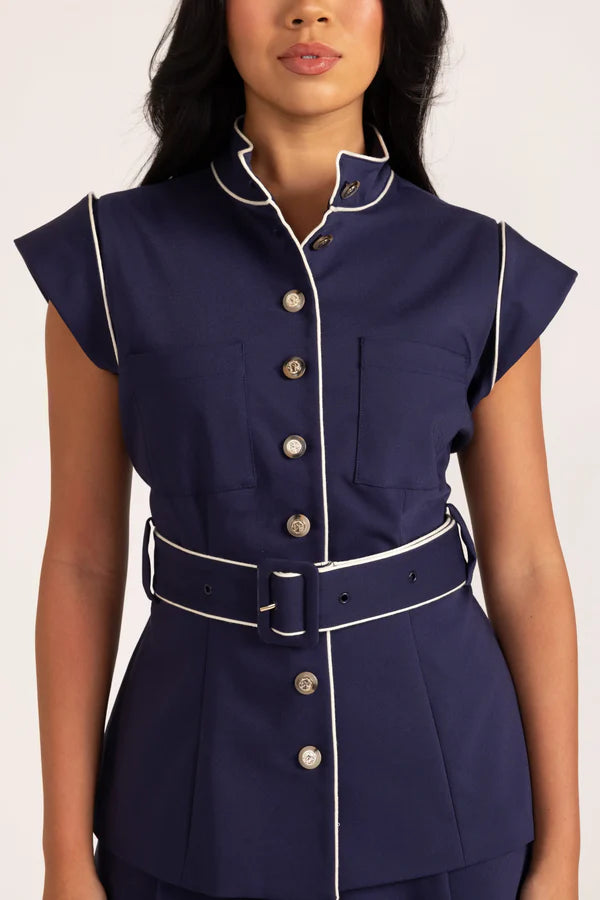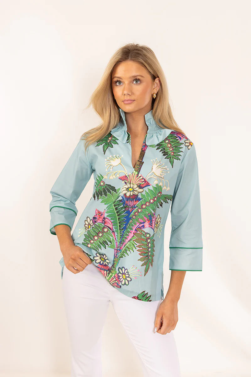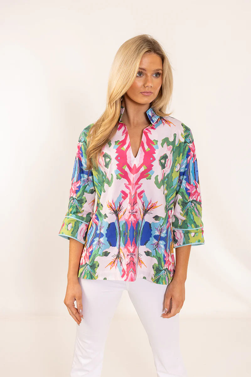 Our Jacks top is just right with its classic stand up collar and full 3/4 sleeves with a double piped cuff for the perfect finish.