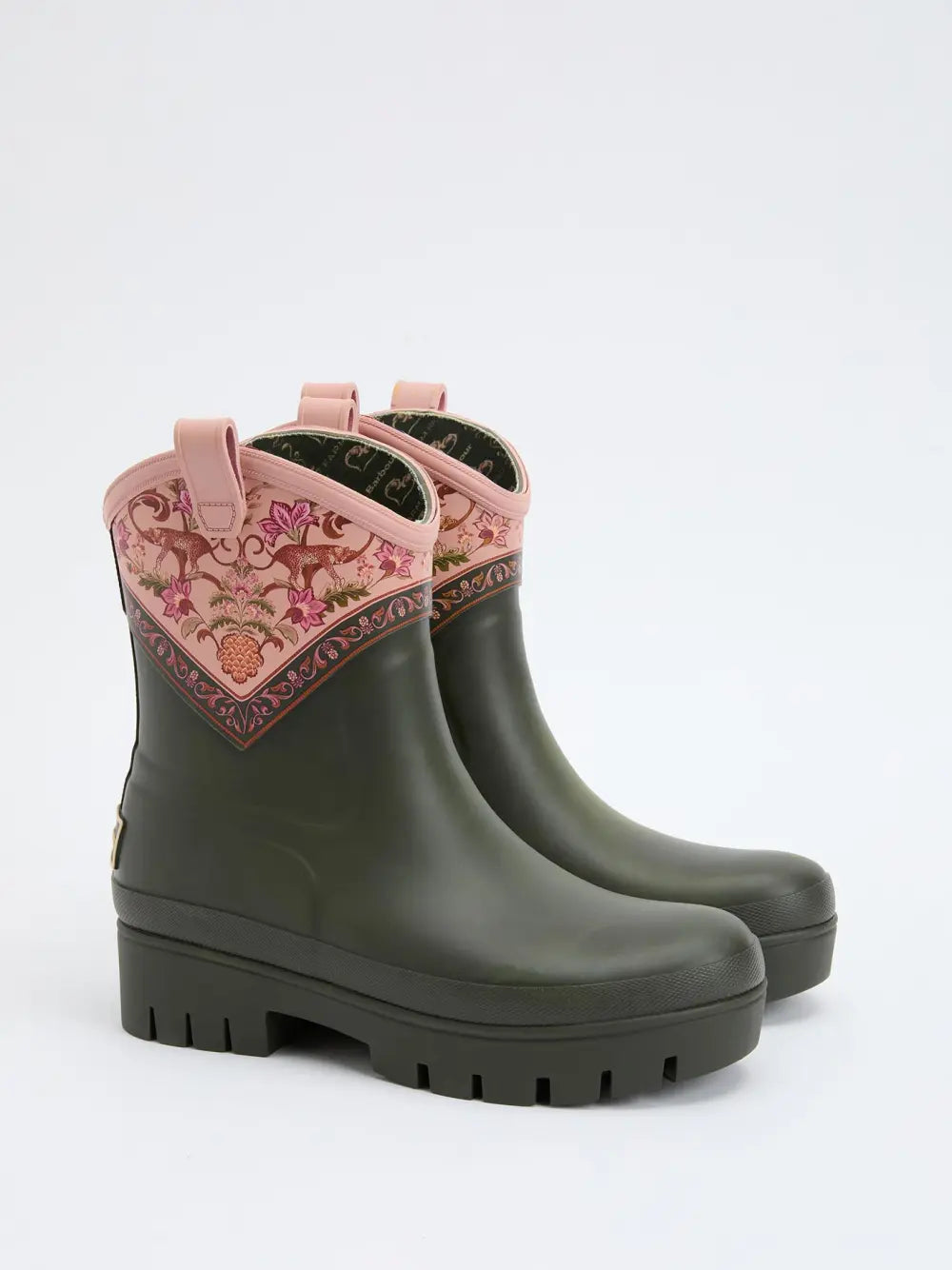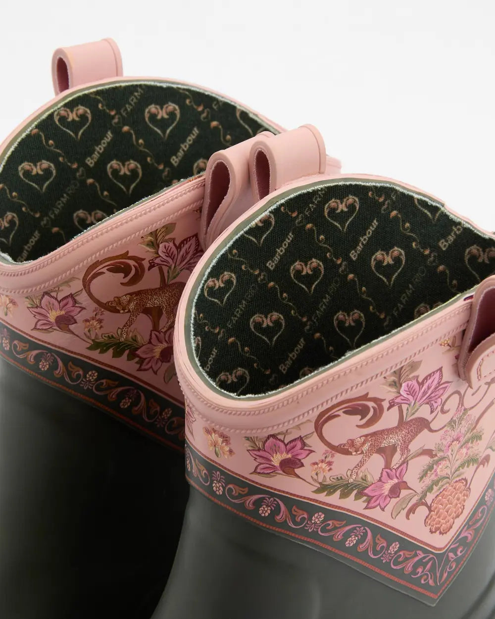 Fusing Barbour's signature countryside spirit and classic outerwear, footwear and accessories with FARM Rio's Brazilian spirit, the Barbour FARM Rio collaboration offer timeless British heritage infused with Brazilian tropical vibrance. Putting a western spin on Barbour's signature ankle wellies, the Barbour FARM Rio Thais Ankle Wellingtons make rainy days brighter. Showcasing the vibrant Barbour FARM Rio Tropical print, these wellingtons were made to ensure you can express yourself even on the dullest of days.
